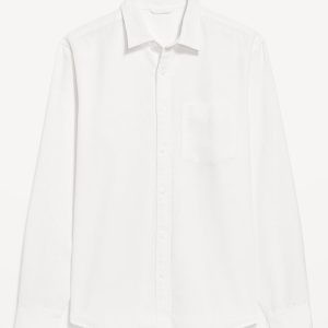 Classic Fit Linen-Blend Shirt: spread collar, long sleeves, buttoned cuffs, full-button front, patch chest pocket, #691163