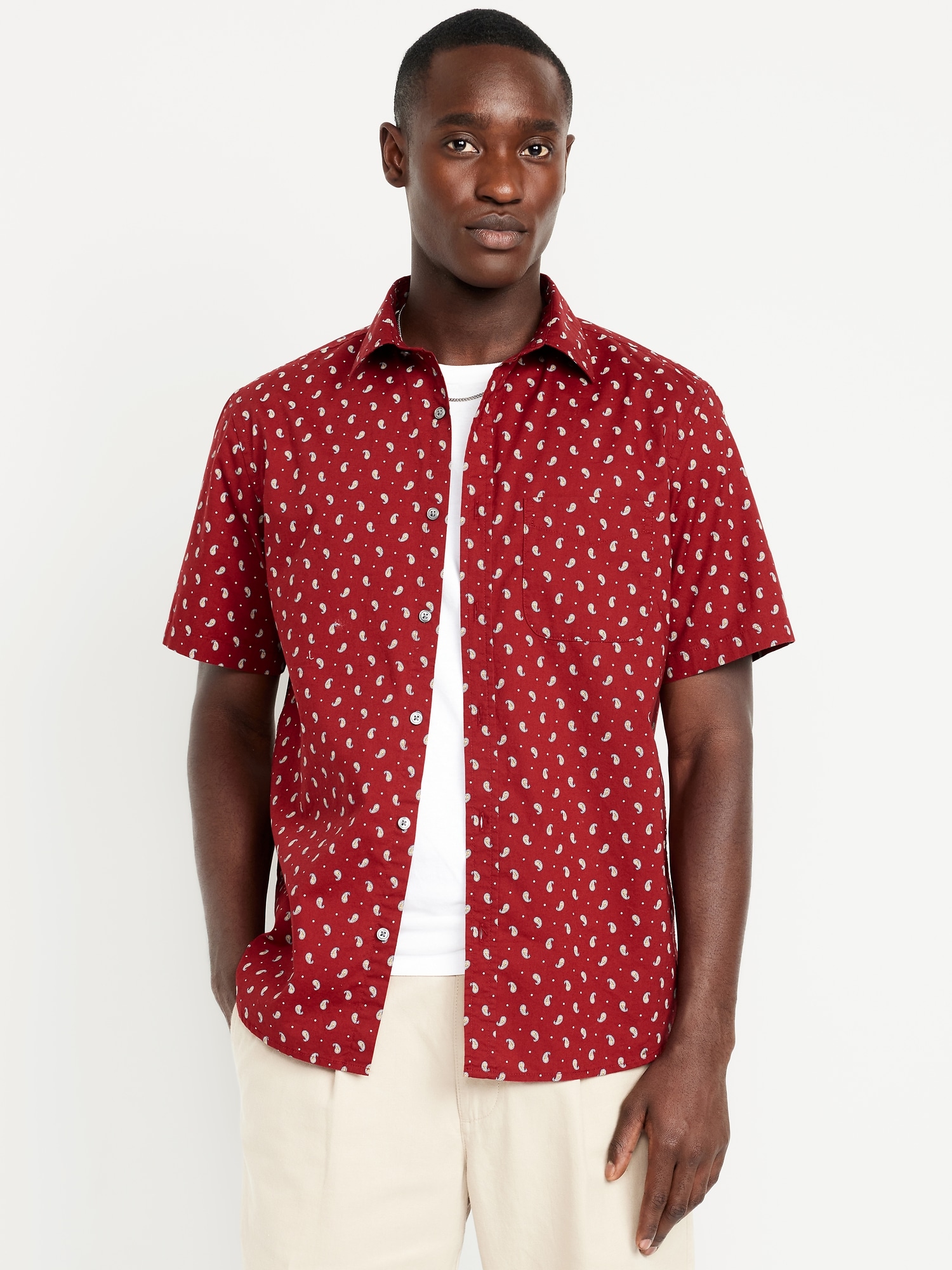 Classic Fit Printed Everyday Shirt: spread collar, short sleeves, full-button front, patch chest pocket, prints vary, #807396