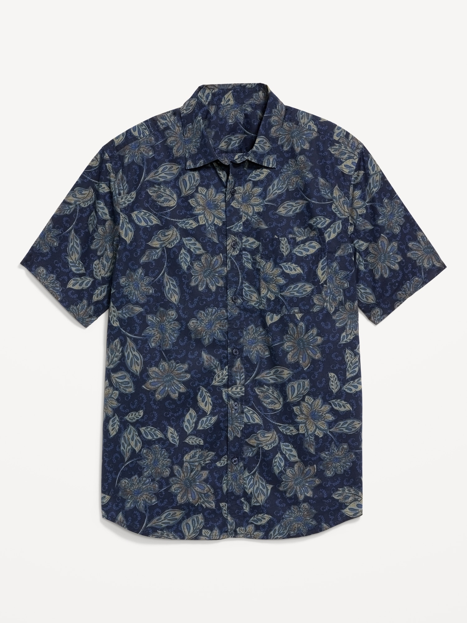 Classic Fit Printed Everyday Shirt: spread collar, short sleeves, full-button front, patch chest pocket, prints vary, #807396