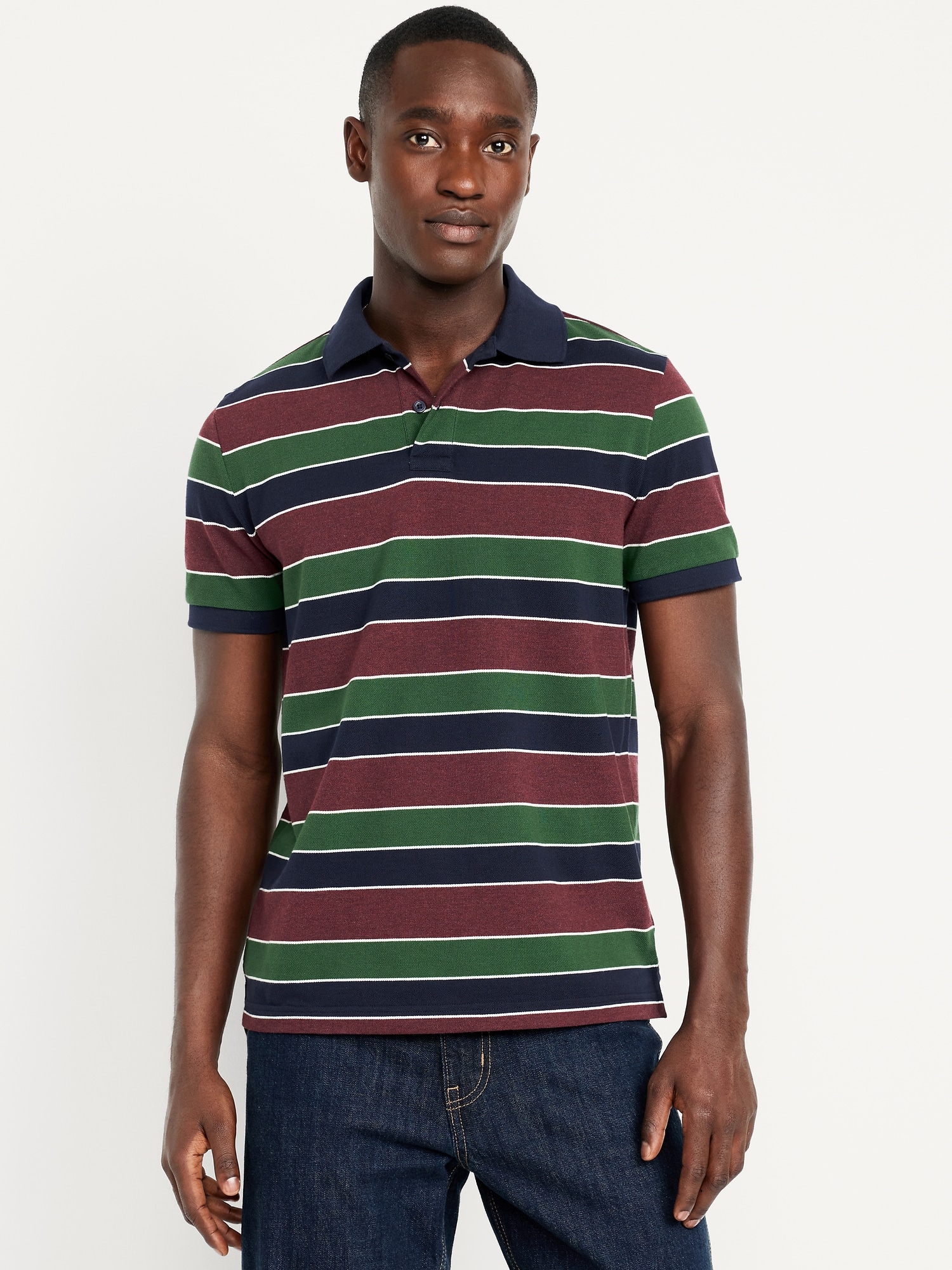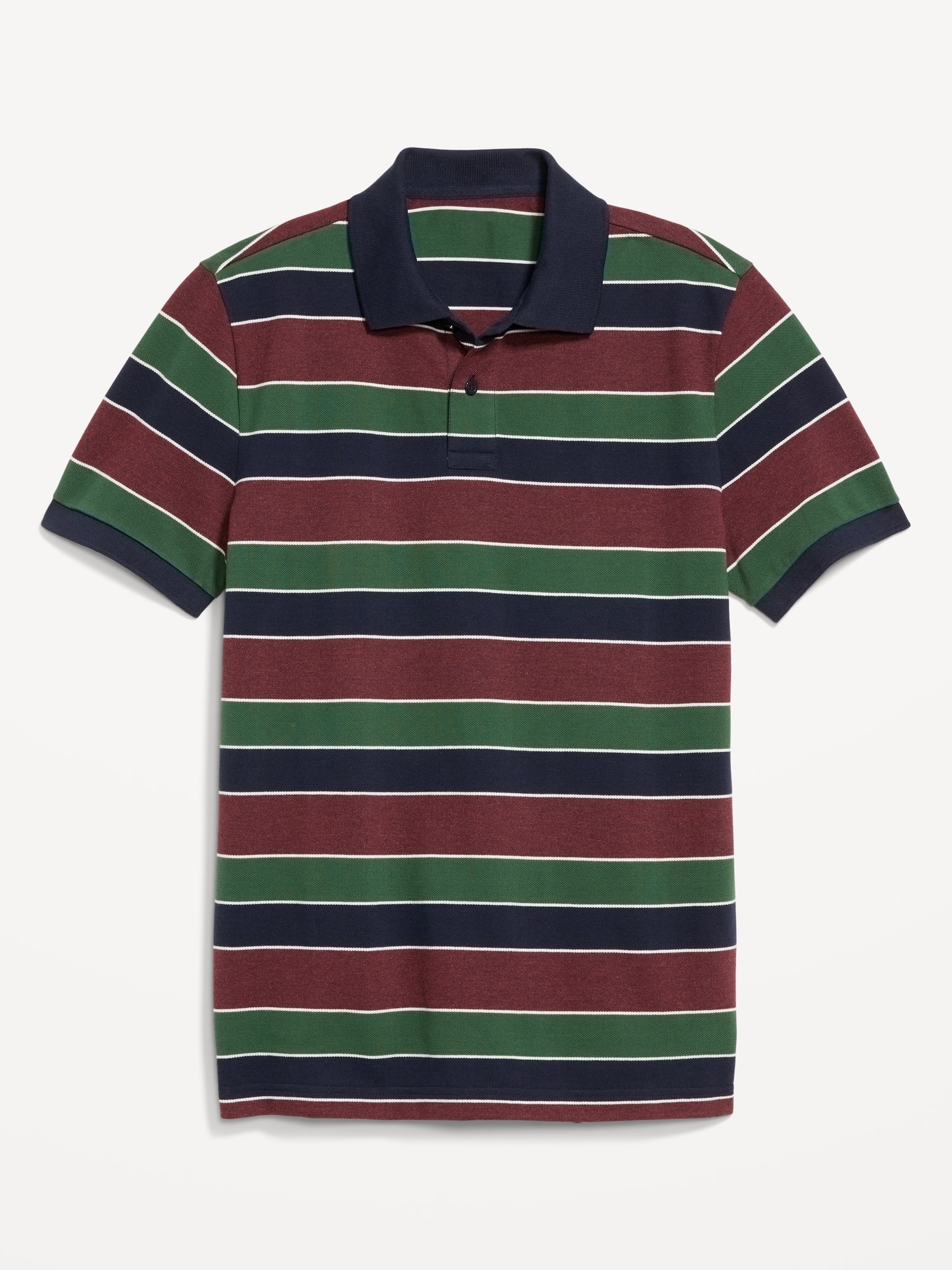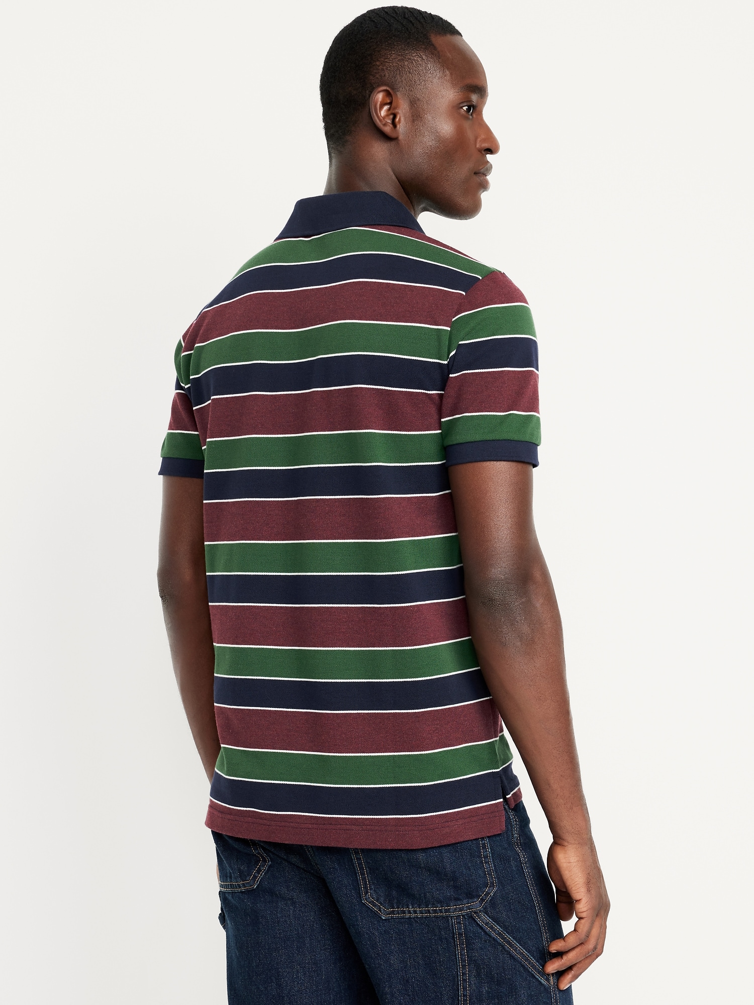 Classic Fit Striped Pique Polo: spread rib-knit collar, short sleeves with rib-knit cuffs, buttoned placket, striped print, vented sides, #800818