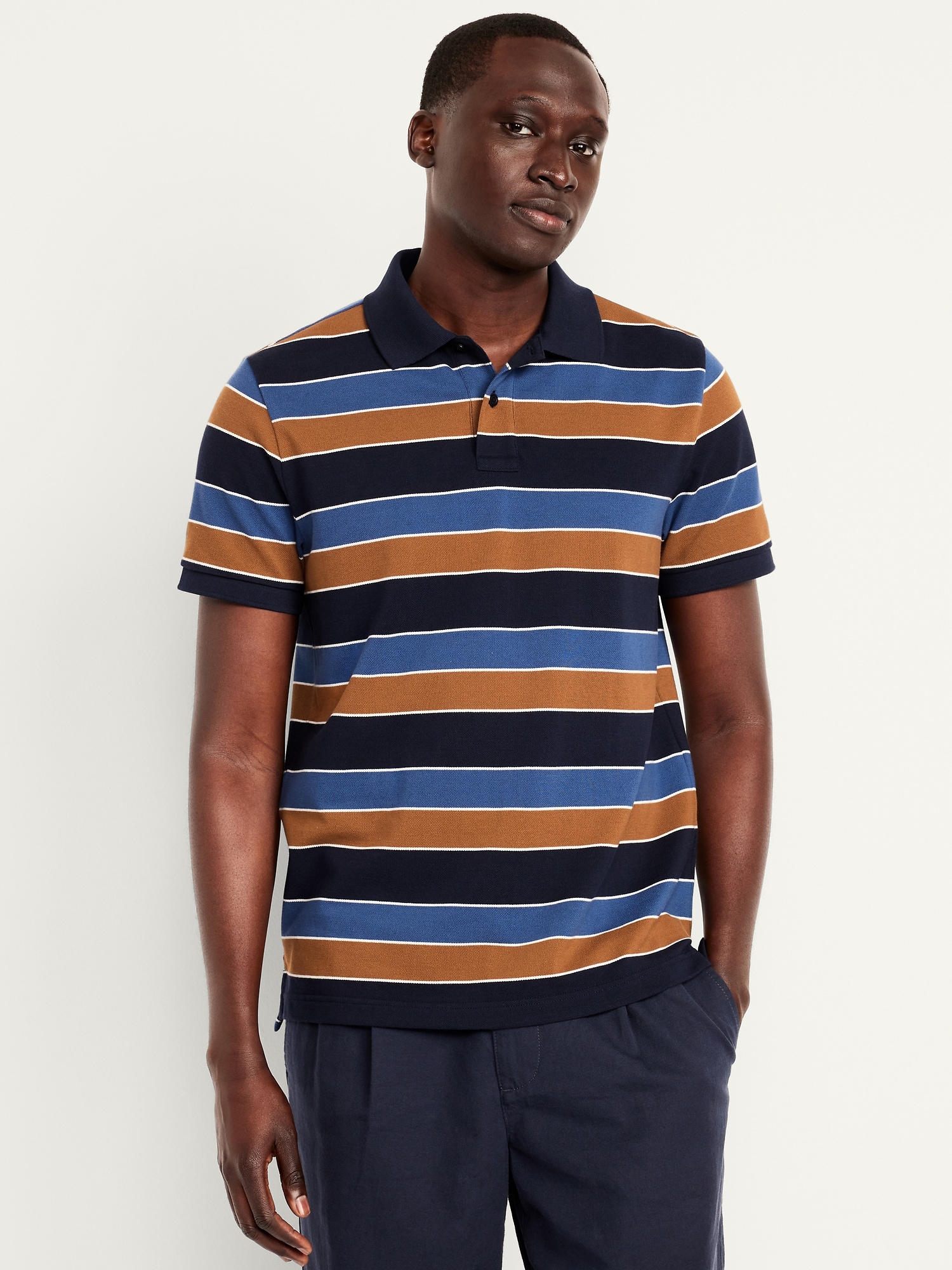 Classic Fit Striped Pique Polo: spread rib-knit collar, short sleeves with rib-knit cuffs, buttoned placket, striped print, vented sides, #800818