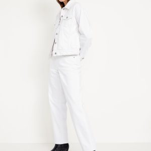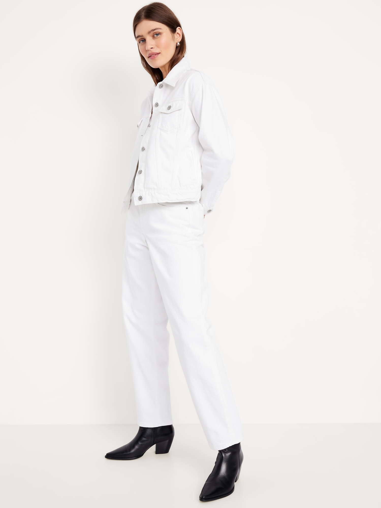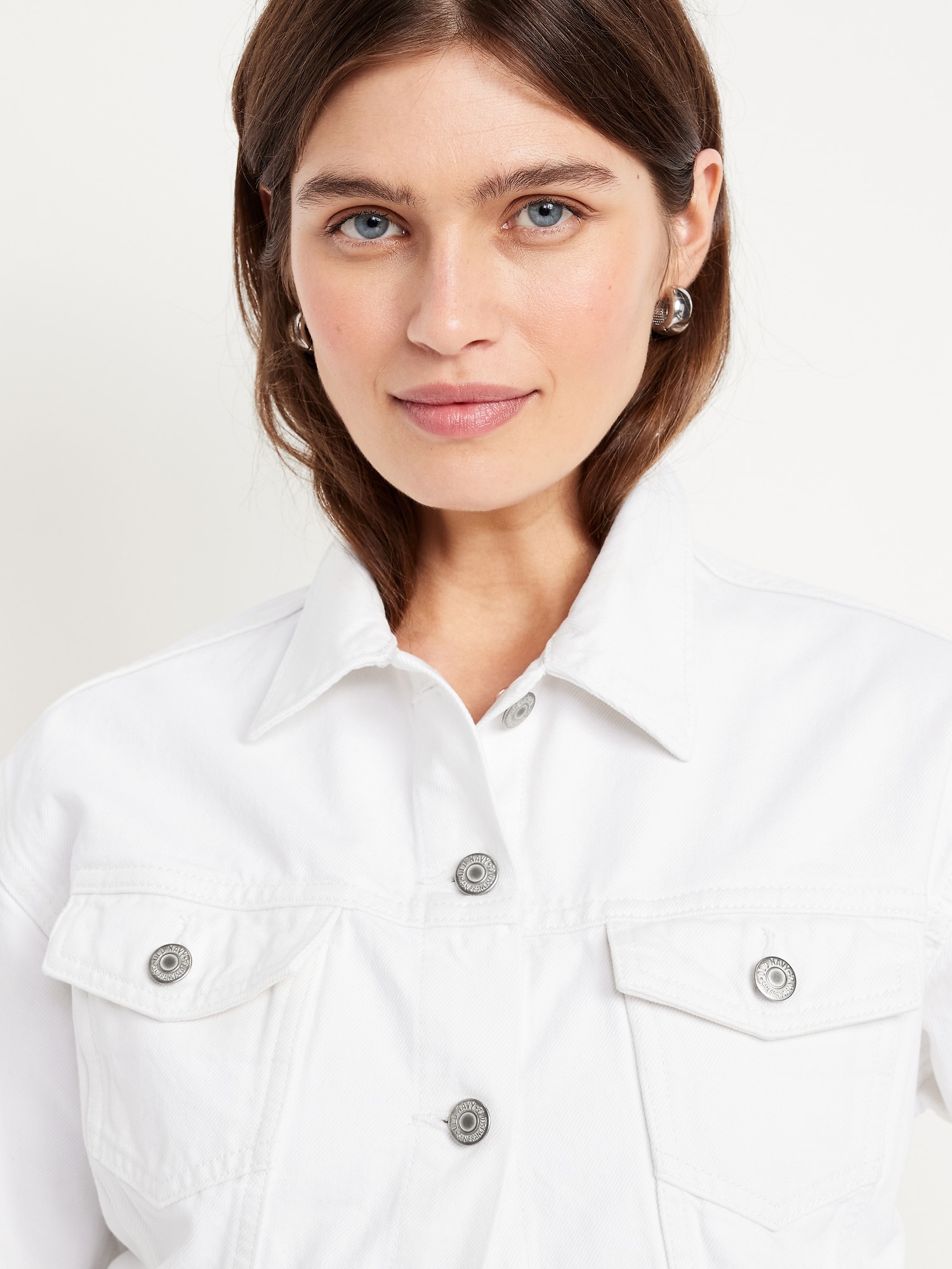 Classic Jean Jacket: spread collar, long sleeves, buttoned cuffs, flap-button chest pockets, on-seam front pockets, full-button front, banded hem, adjustable button tabs at back waist, #467752