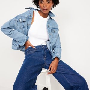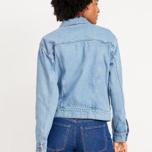Classic Jean Jacket: spread collar, long sleeves, buttoned cuffs, button front, button-flap chest pockets, vertical welt pockets, adjustable button tabs at back waist, #465150