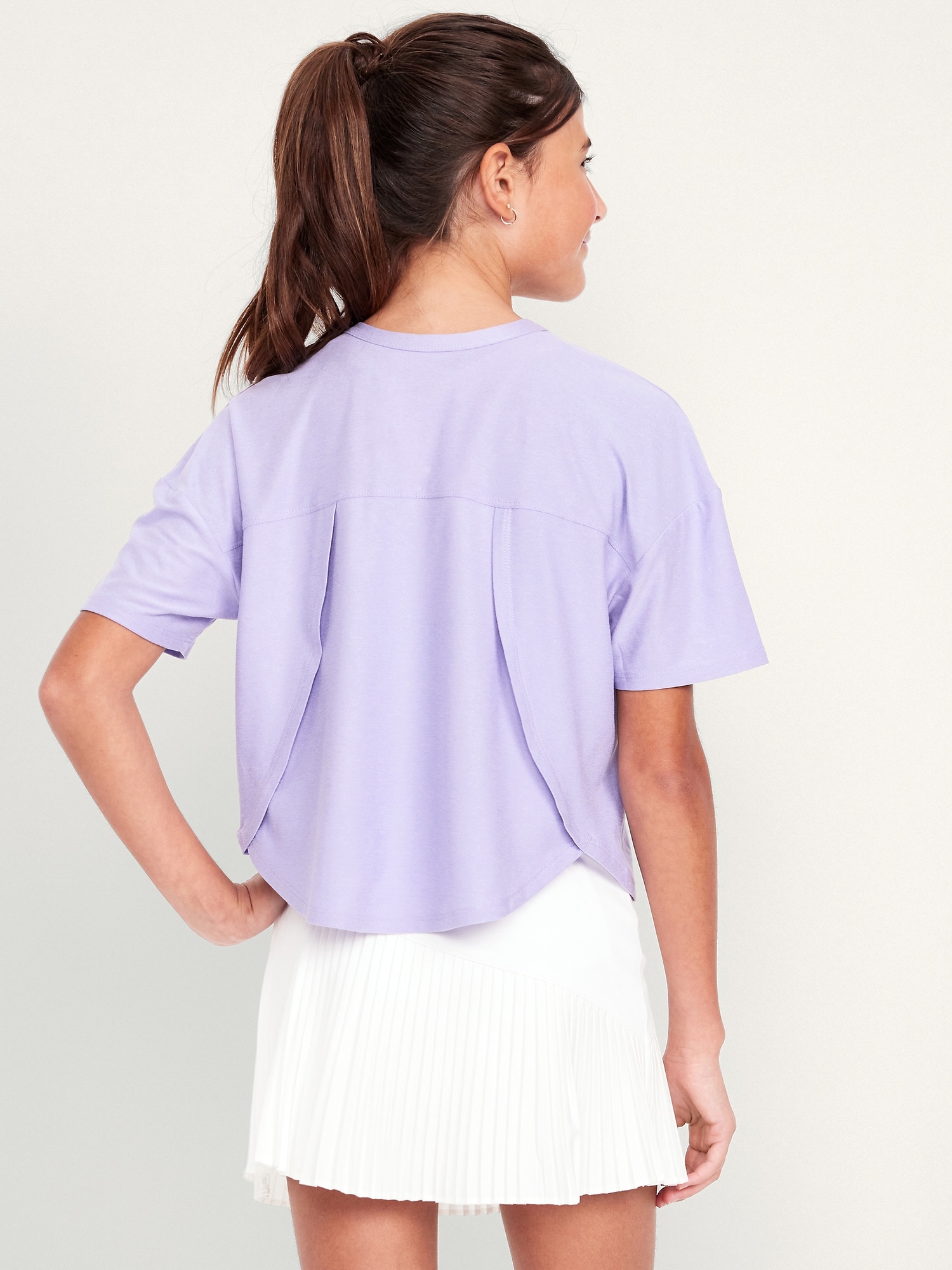 CloudMotion Cropped Performance T-Shirt for Girls: crew neck, short sleeves, drop shoulders, tulip hem, slightly cropped, #694626