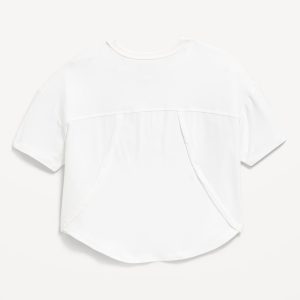 CloudMotion Cropped Performance T-Shirt for Girls: crew neck, short sleeves, drop shoulders, tulip hem, slightly cropped, #694626