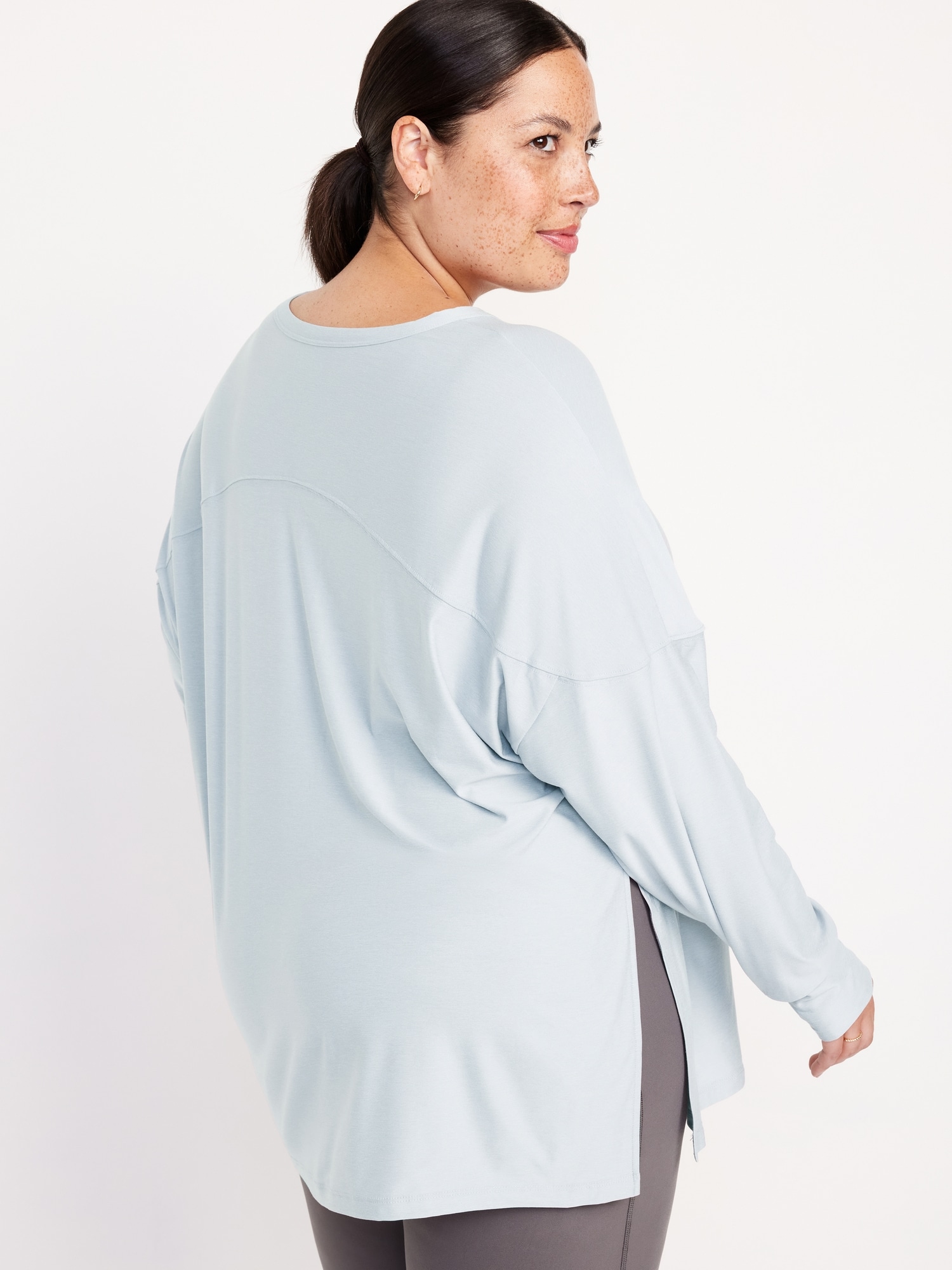 CloudMotion Tunic: The new Cloud94 Soft. Versatile, sweat-wicking and soft as a literal cloud.crew neck, long sleeves, seamed yoke, vented sides, #809348