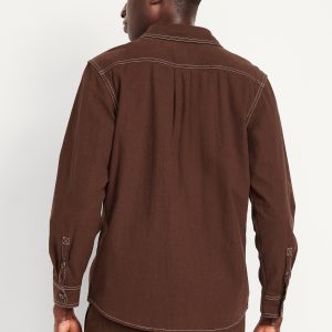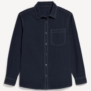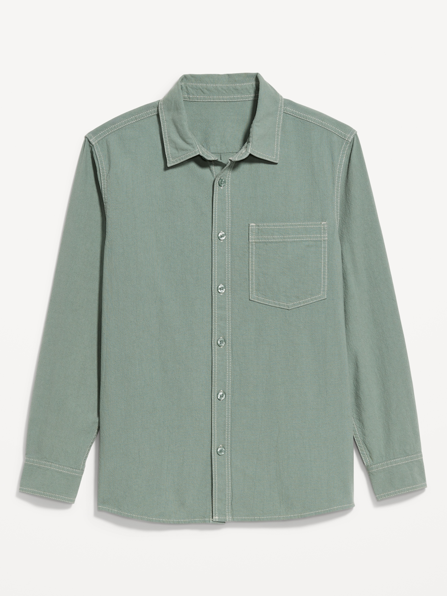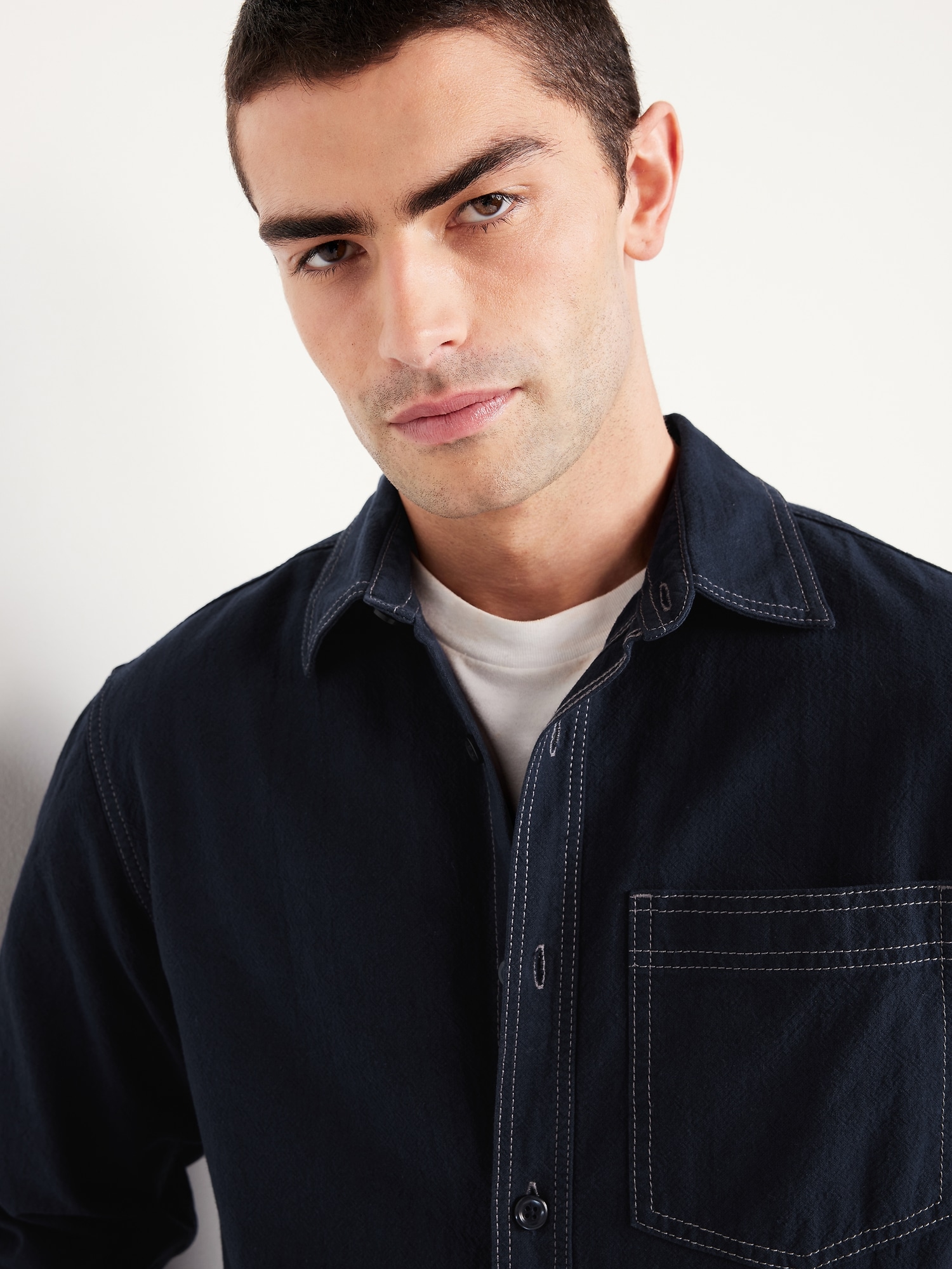 Contrast Stitch Workwear Shirt: spread collar, long sleeves, full-button front, patch chest pocket, contrast stitching, #762447
