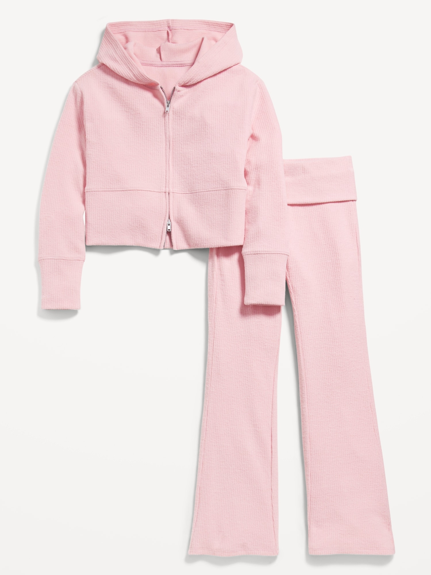 CozePlush Zip Hoodie and Flare-Leg Pants Set for Girls