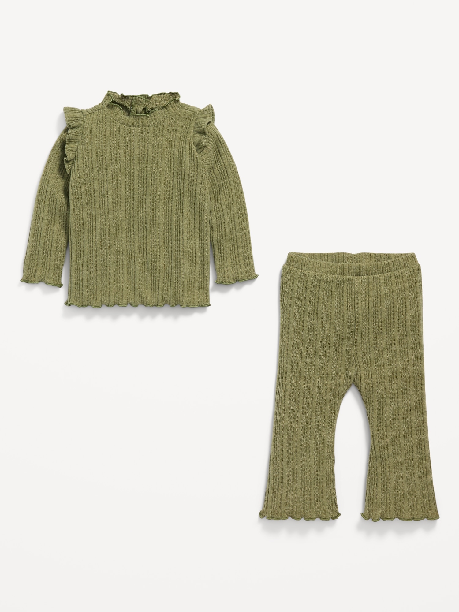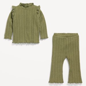 Cozy Long-Sleeve Ribbed Ruffle-Trim Top and Pants Set for Baby