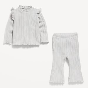 Cozy Long-Sleeve Ribbed Ruffle-Trim Top and Pants Set for Baby