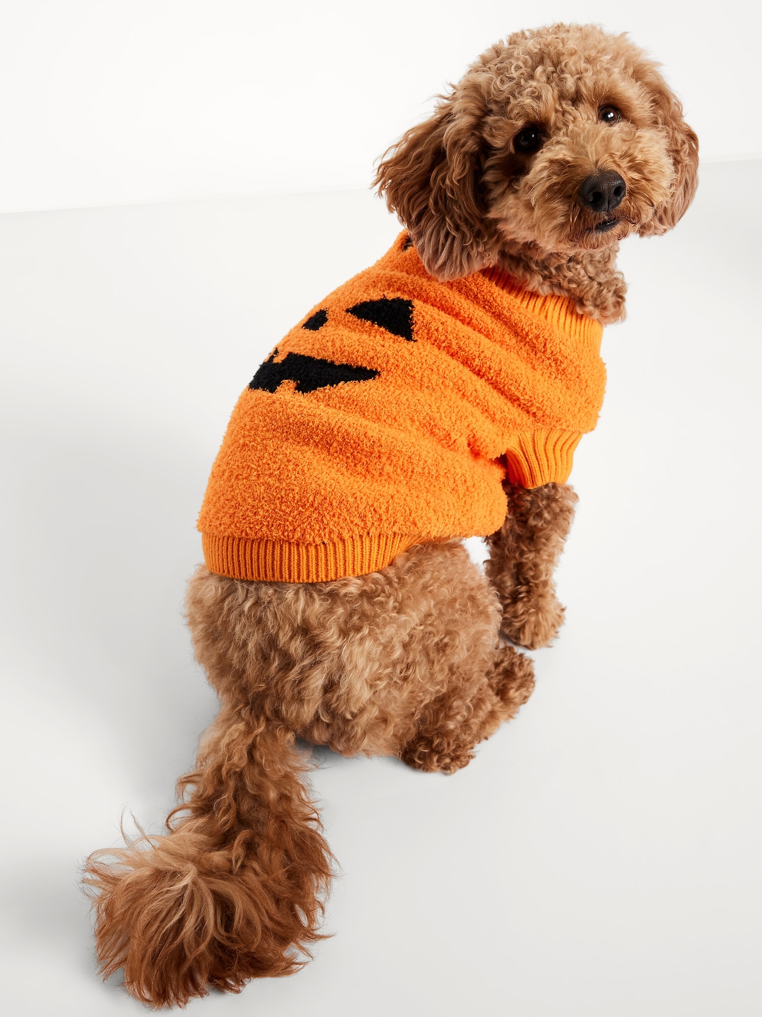 Cozy Printed Sweater for Pets: rib-knit collar, rib-knit front leg cuffs and hem, keyhole opening at back neck, #787787