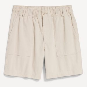 Crepe Workwear Shorts — 7-inch inseam: elastic-drawstring waistband, button front, front utility pockets, back button-flap pockets, easy pull-on style, #751383