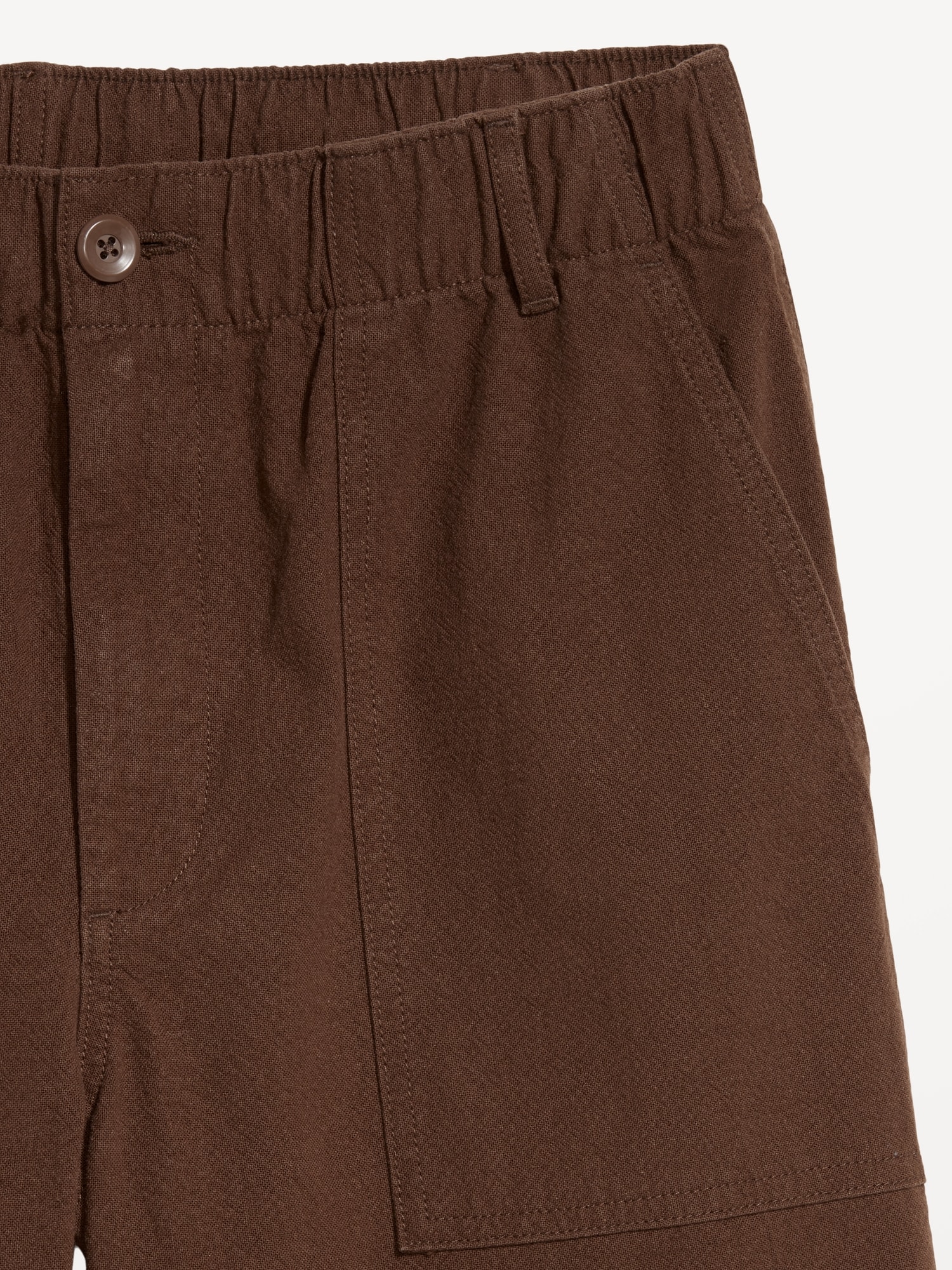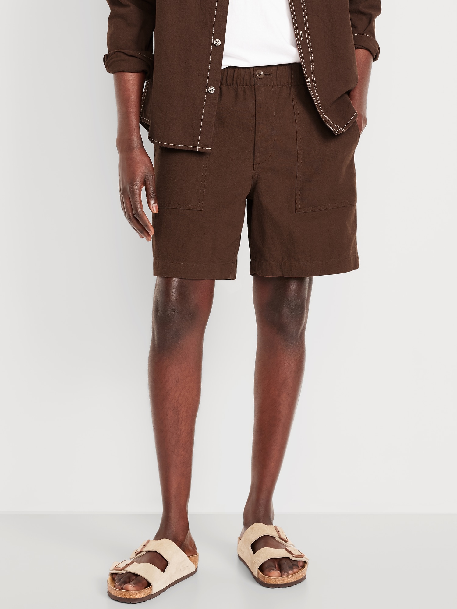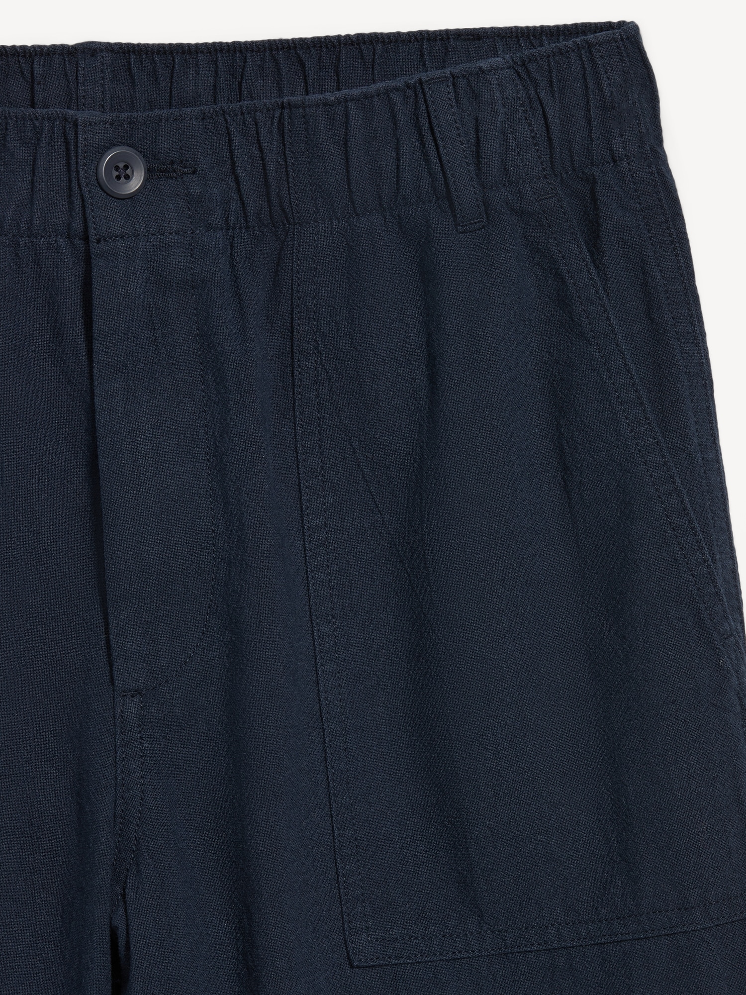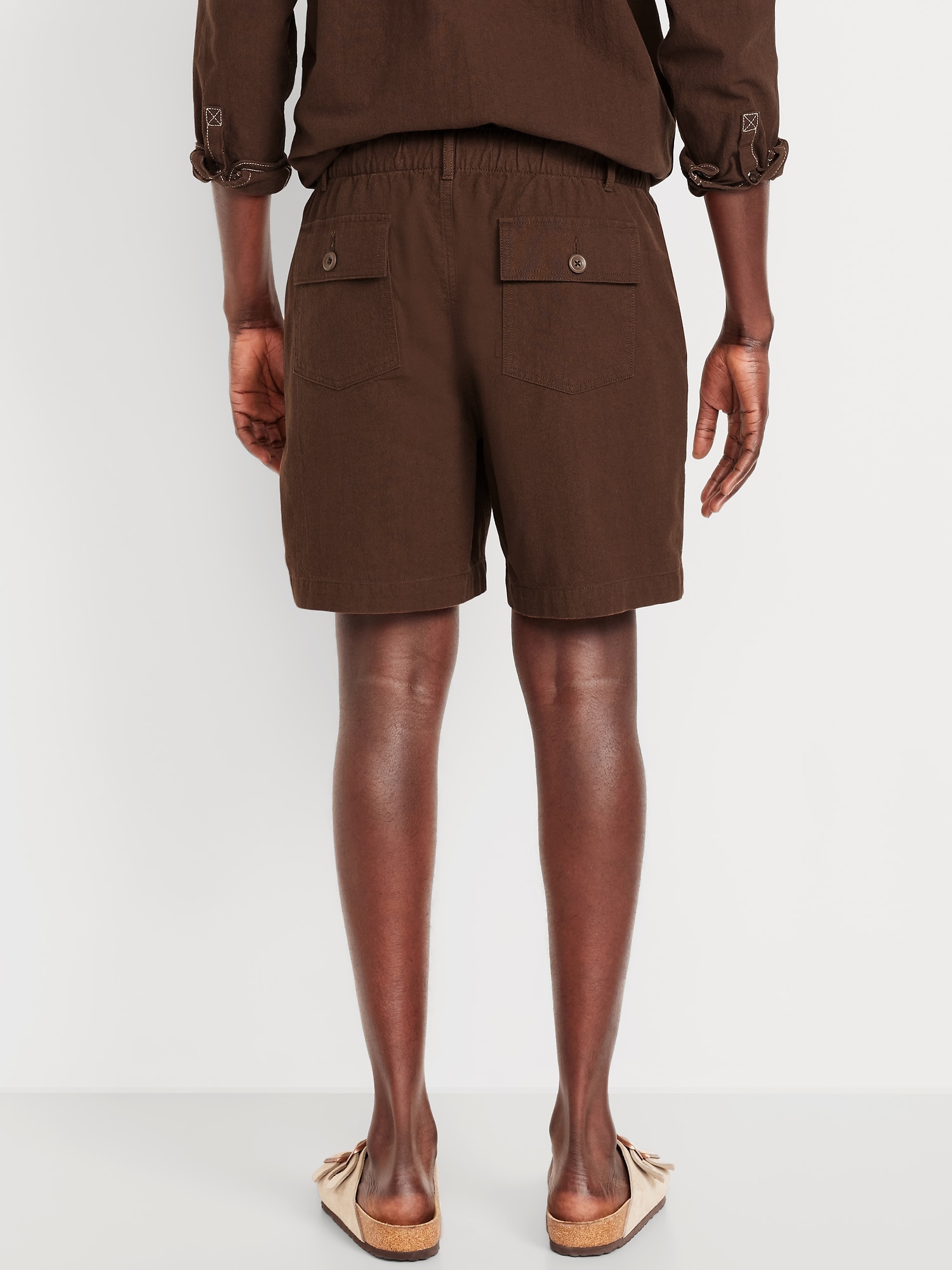 Crepe Workwear Shorts — 7-inch inseam: elastic-drawstring waistband, button front, front utility pockets, back button-flap pockets, easy pull-on style, #751383