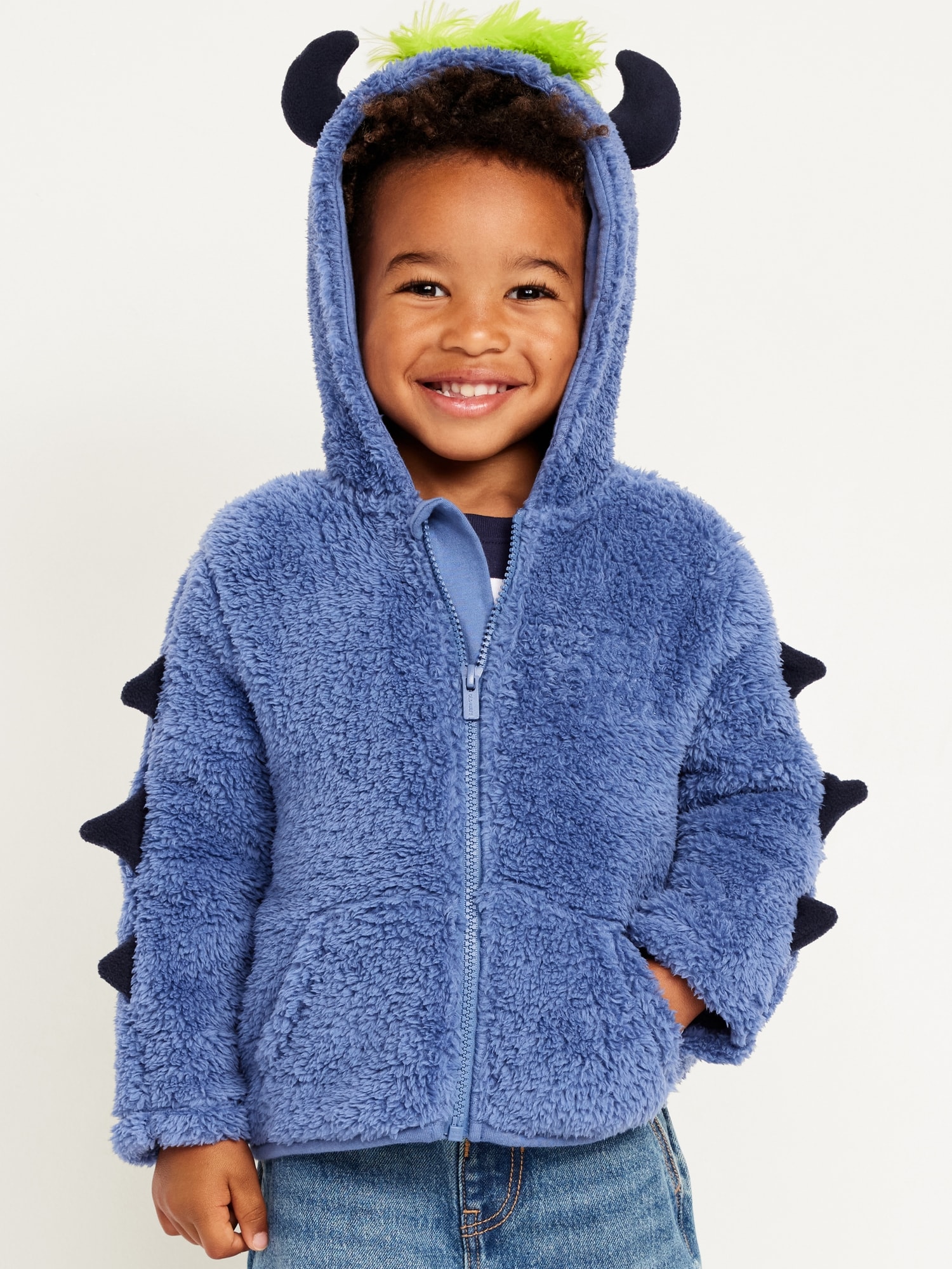 Critter Hooded Jacket for Toddler Boys: built-in hood with critter “ears”, long sleeves, hand-warming pockets, full-length zipper, #800889