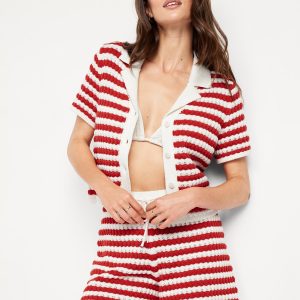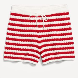 Crochet Shorts — 3.5-inch inseam: elastic-drawcord waist, striped crochet, #761559