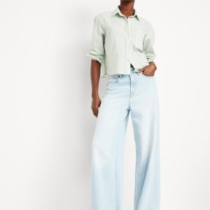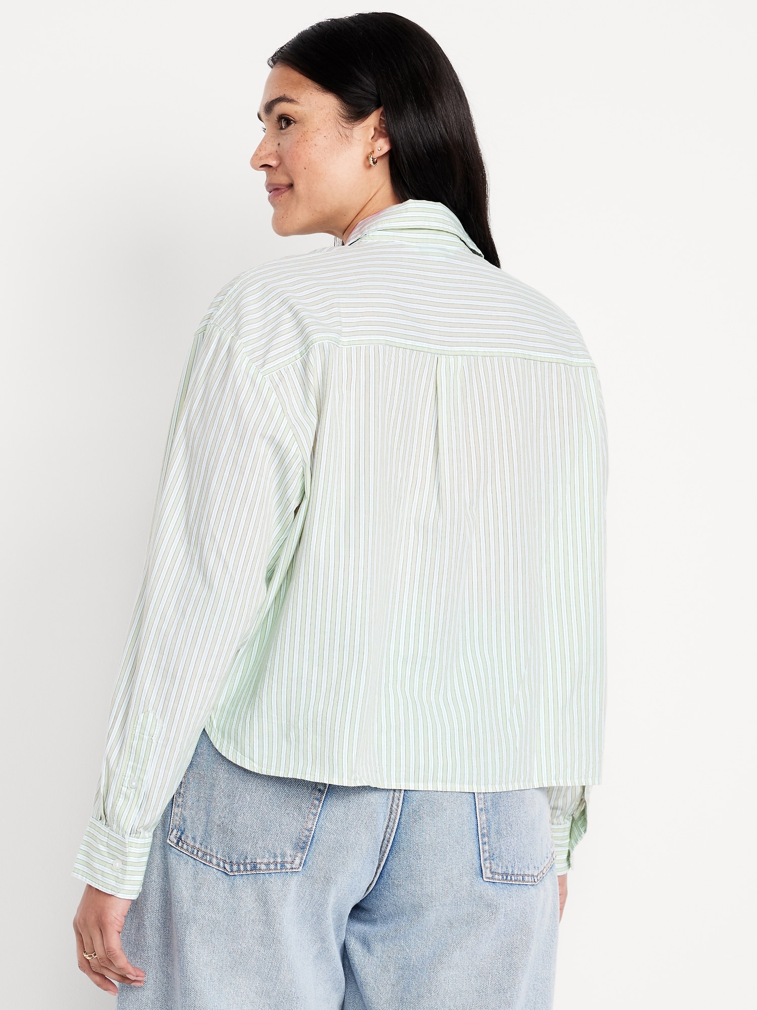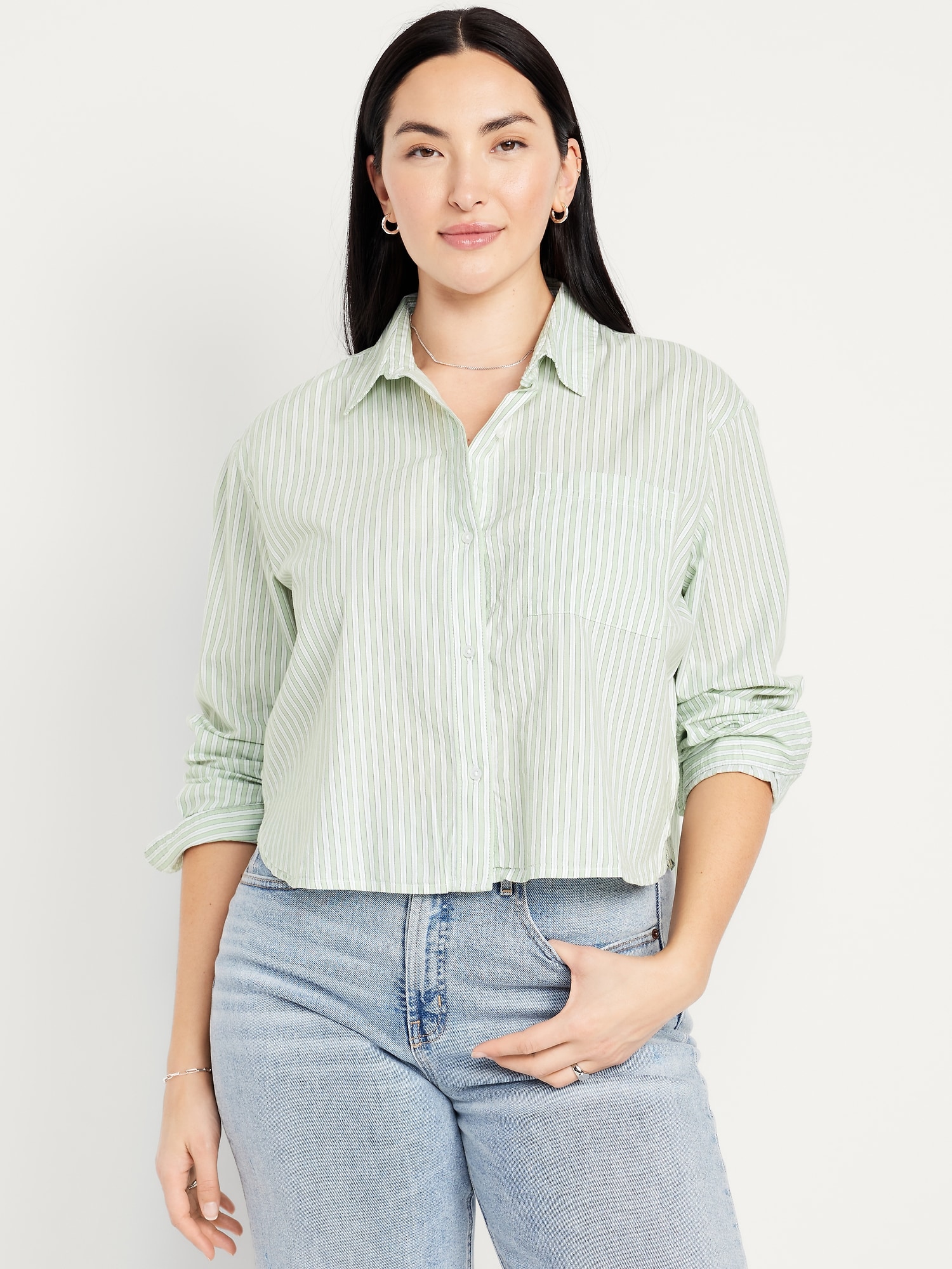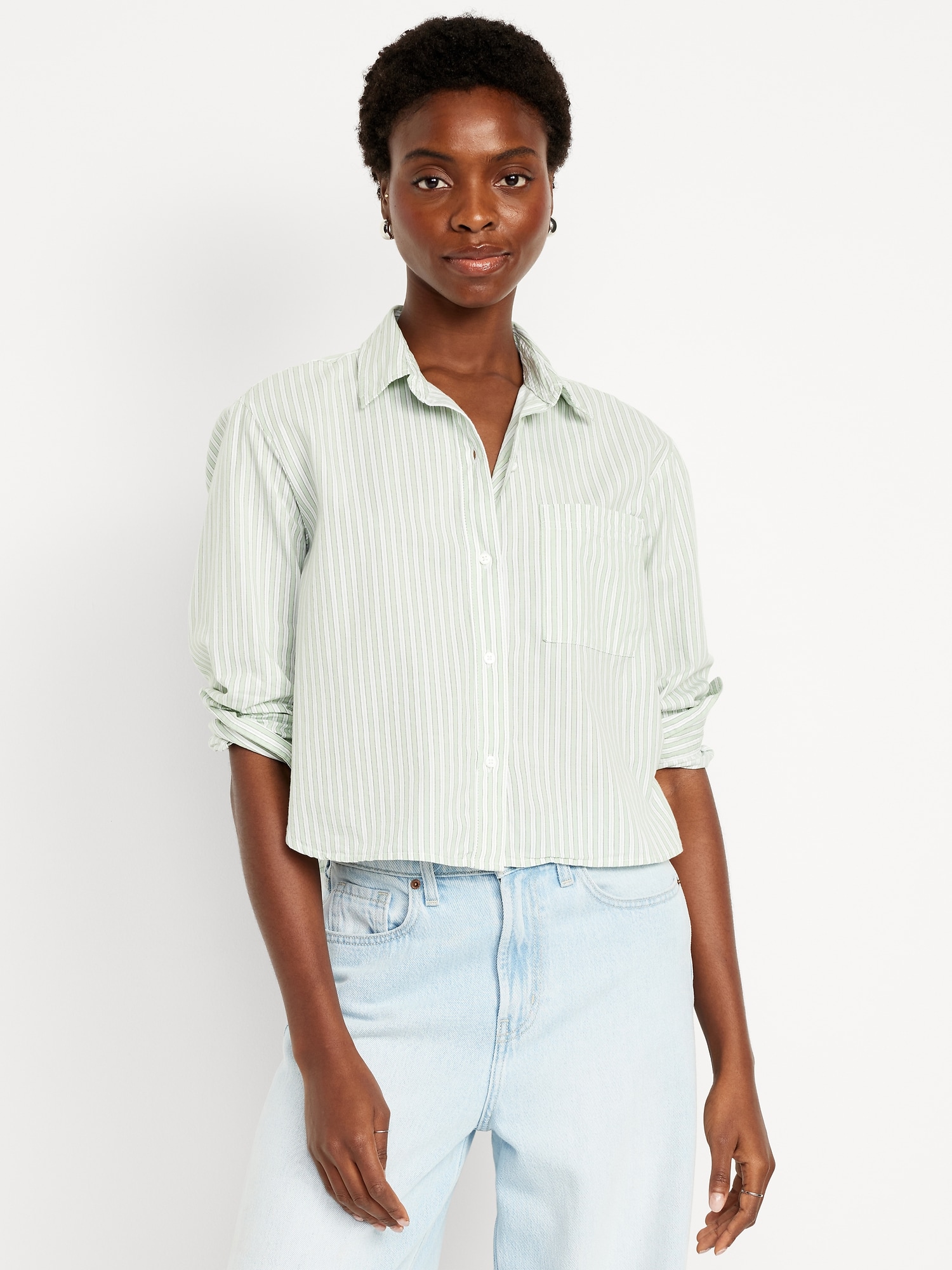 Cropped Button-Down Striped Shirt