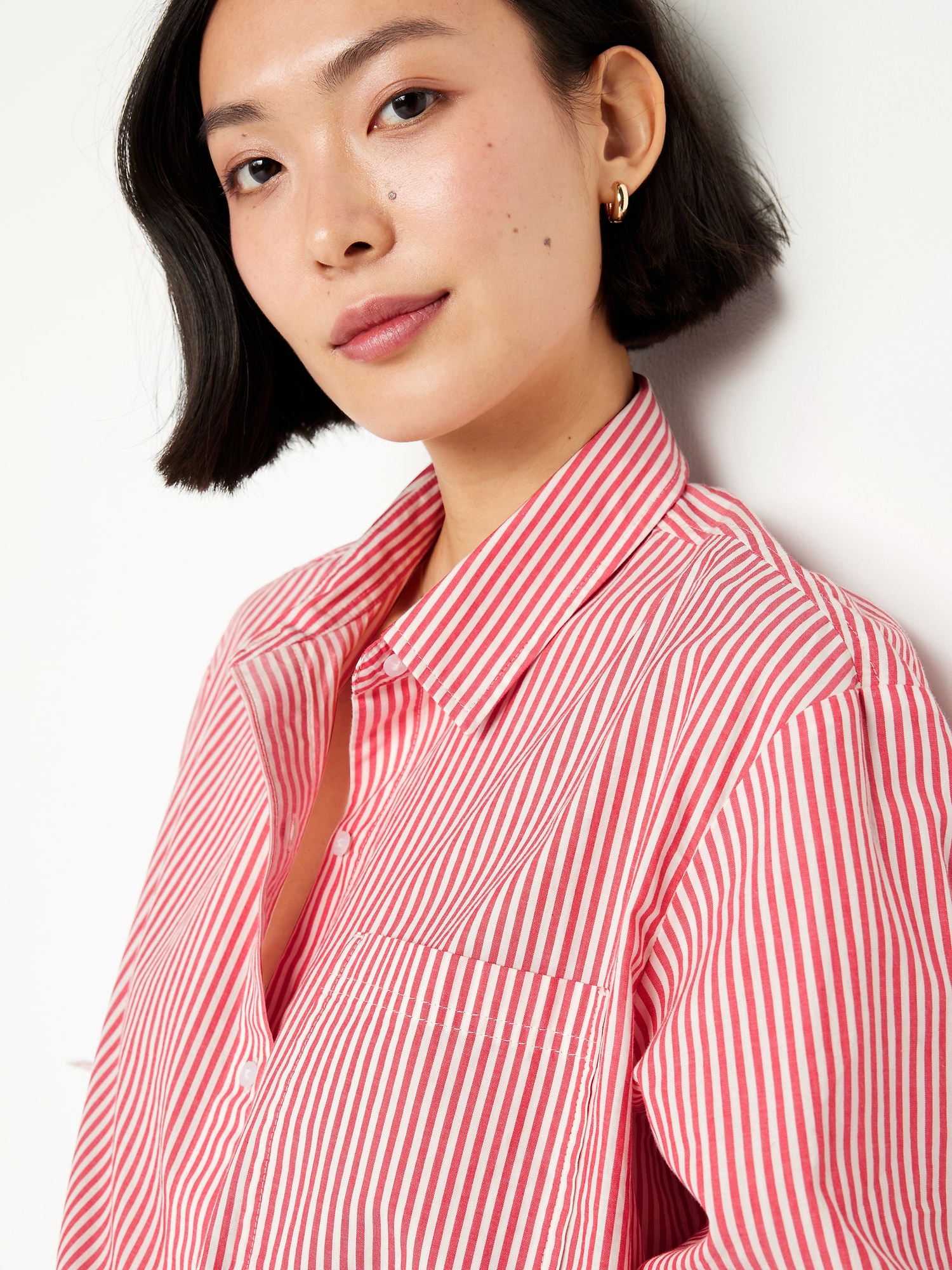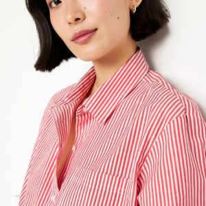 Cropped Button-Down Striped Shirt