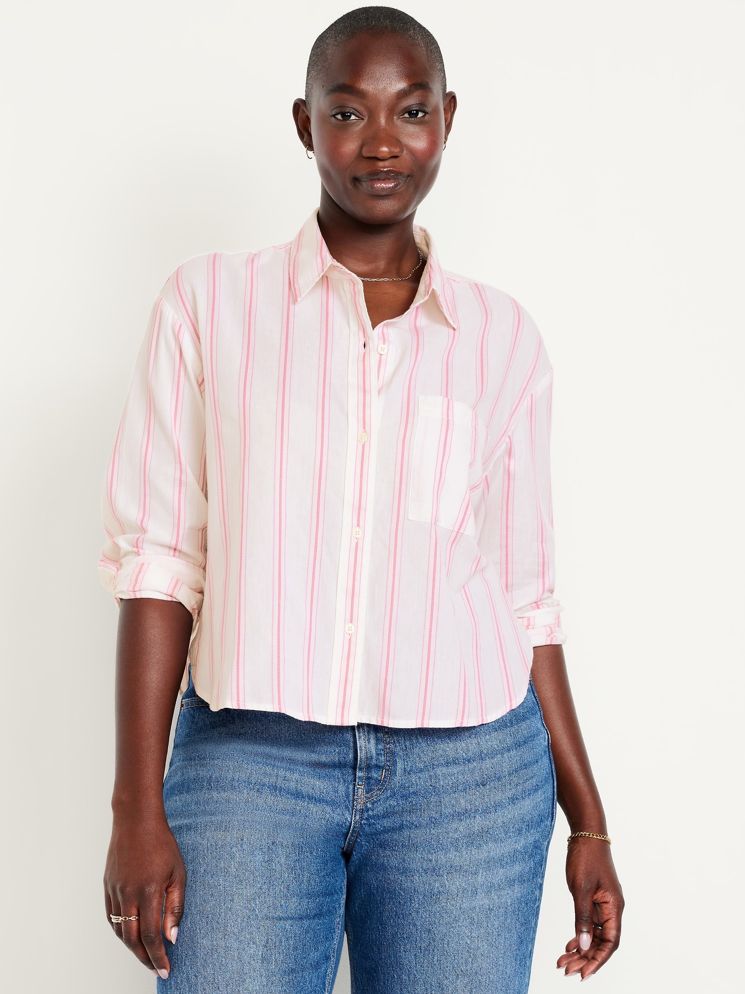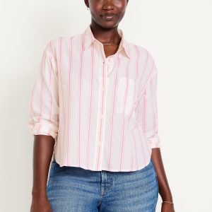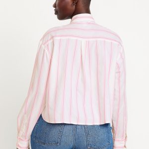 Cropped Button-Down Striped Shirt