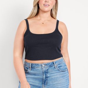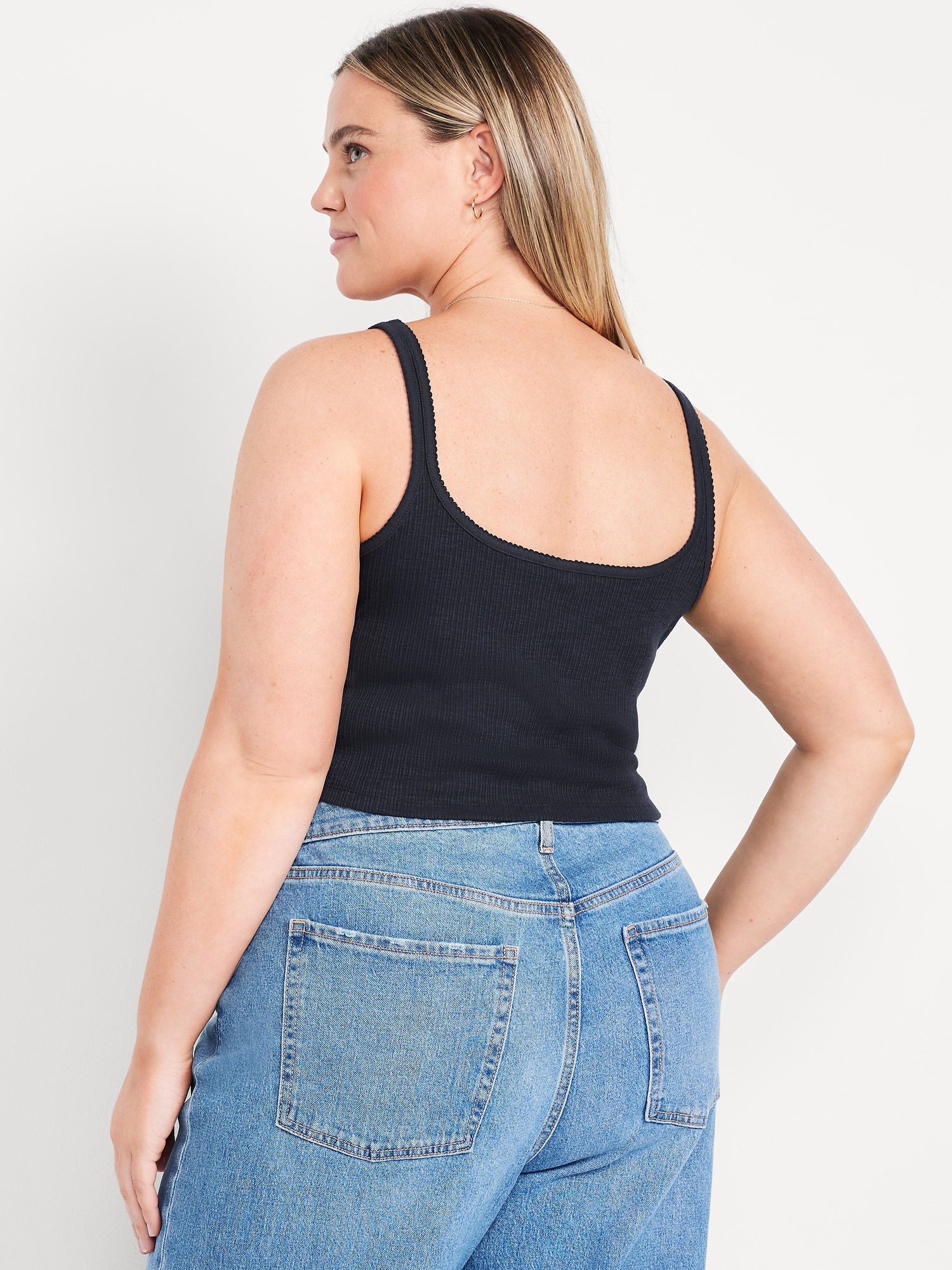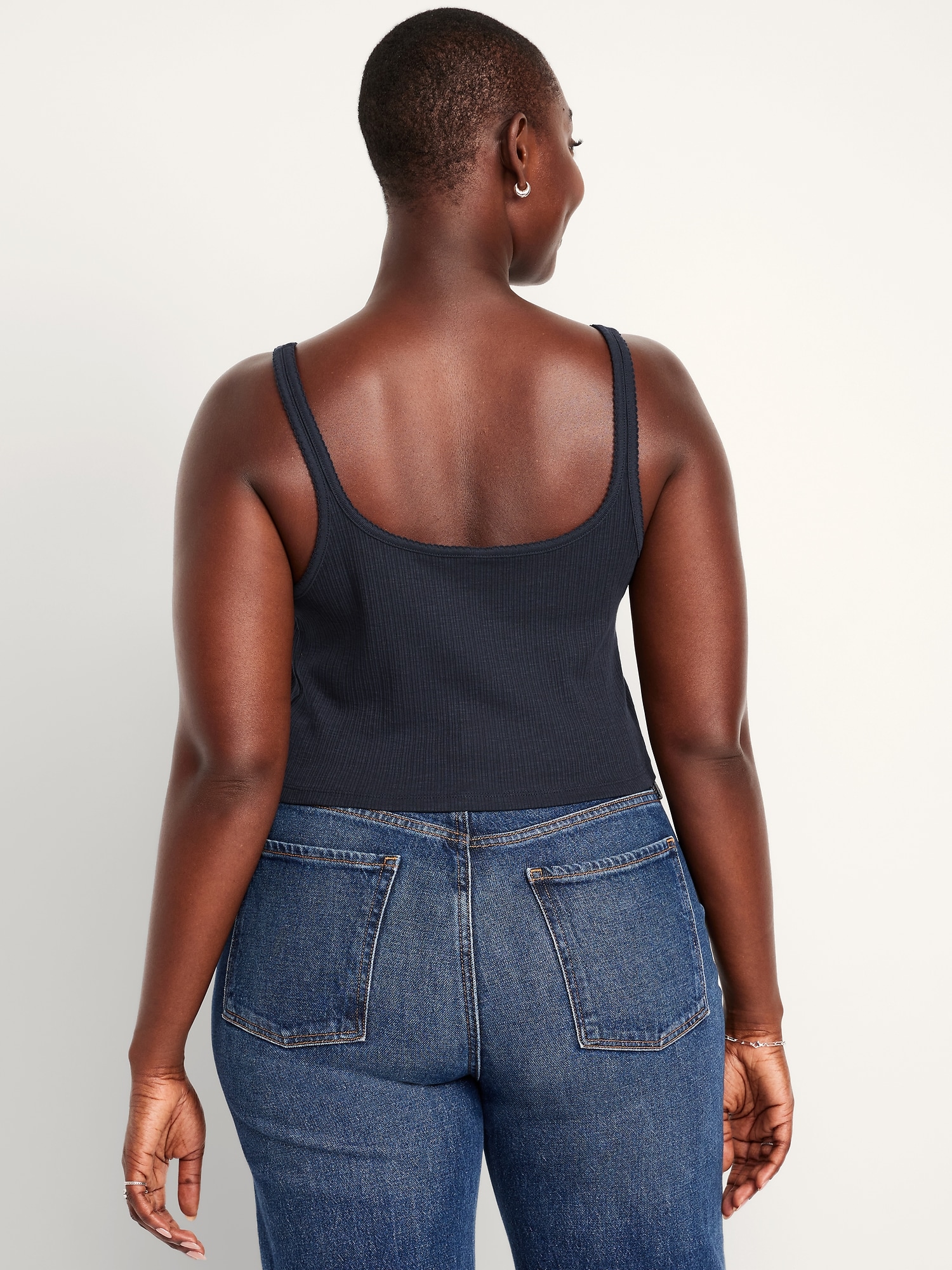 Cropped Pointelle Cami Top: scoop neck, spaghetti straps, #844566