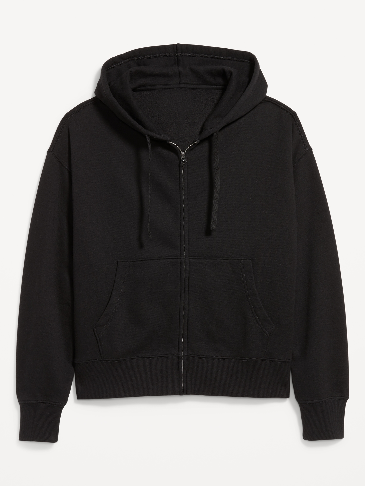 Cropped Rotation Oversized Zip Hoodie: drawstring hood, long drop-shoulder sleeves, full-zip front, hand-warming pockets, rib-knit trim, #828315