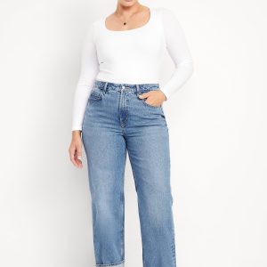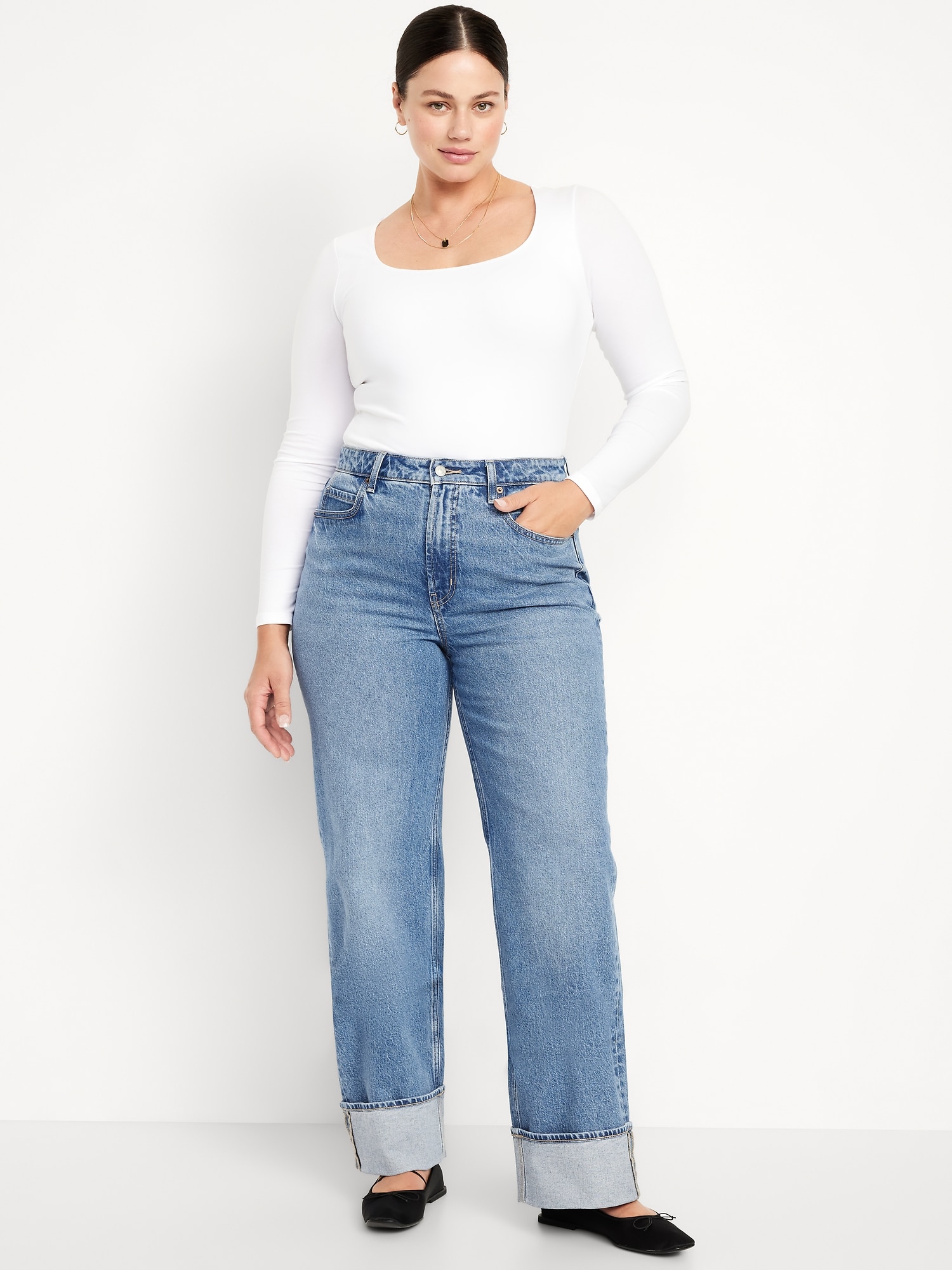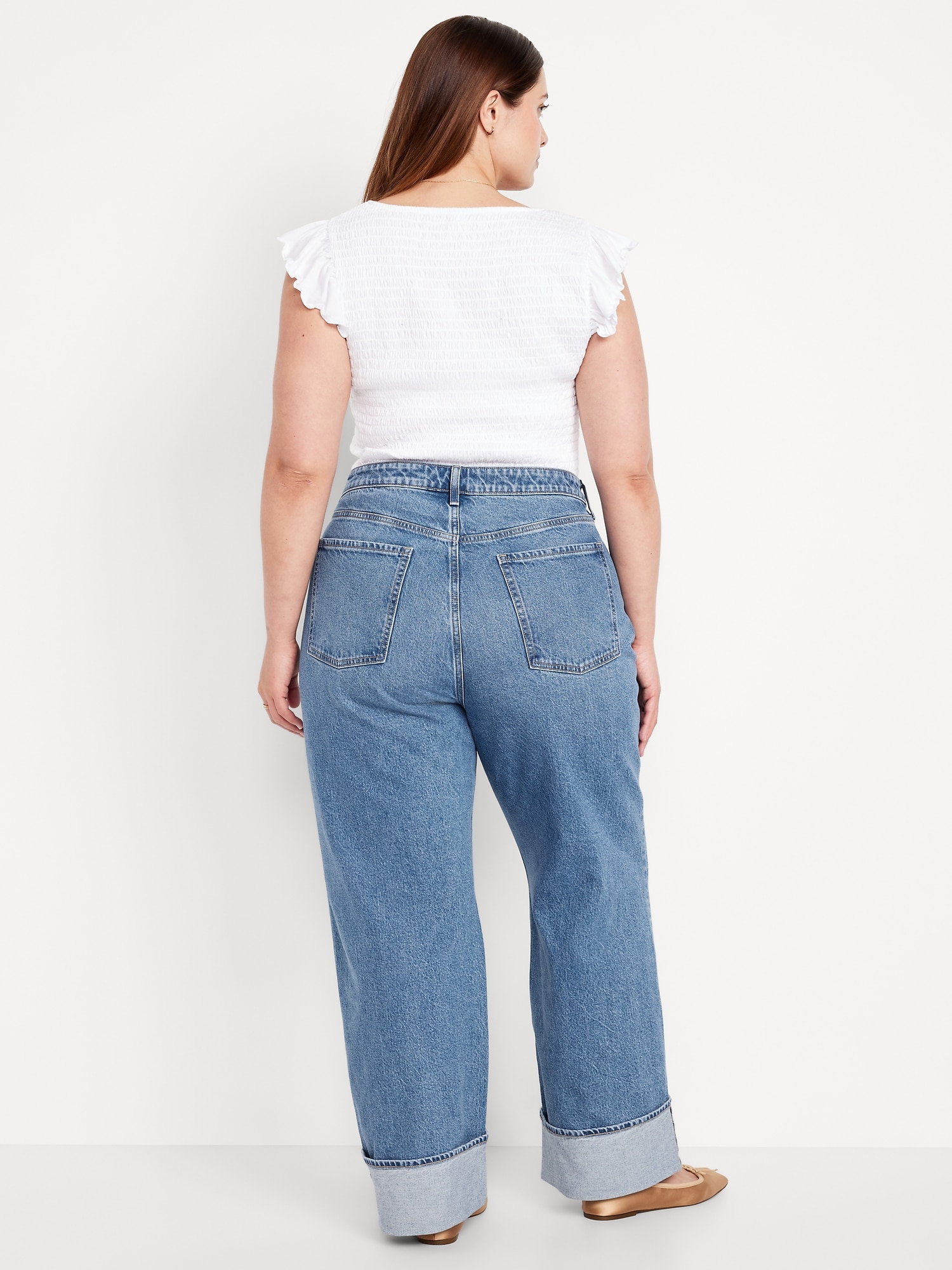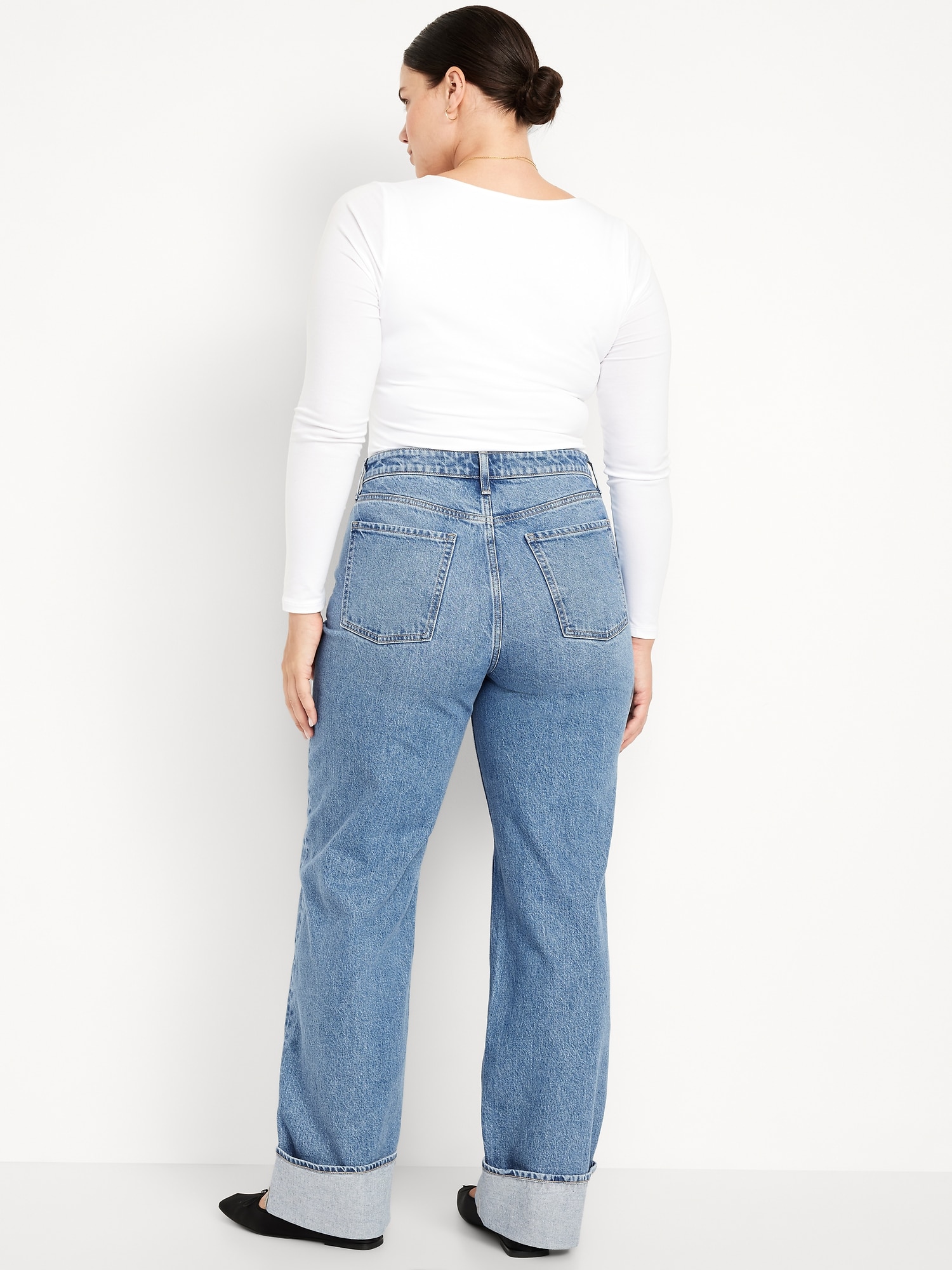 Curvy Extra High-Waisted Cuffed Wide-Leg Jeans
