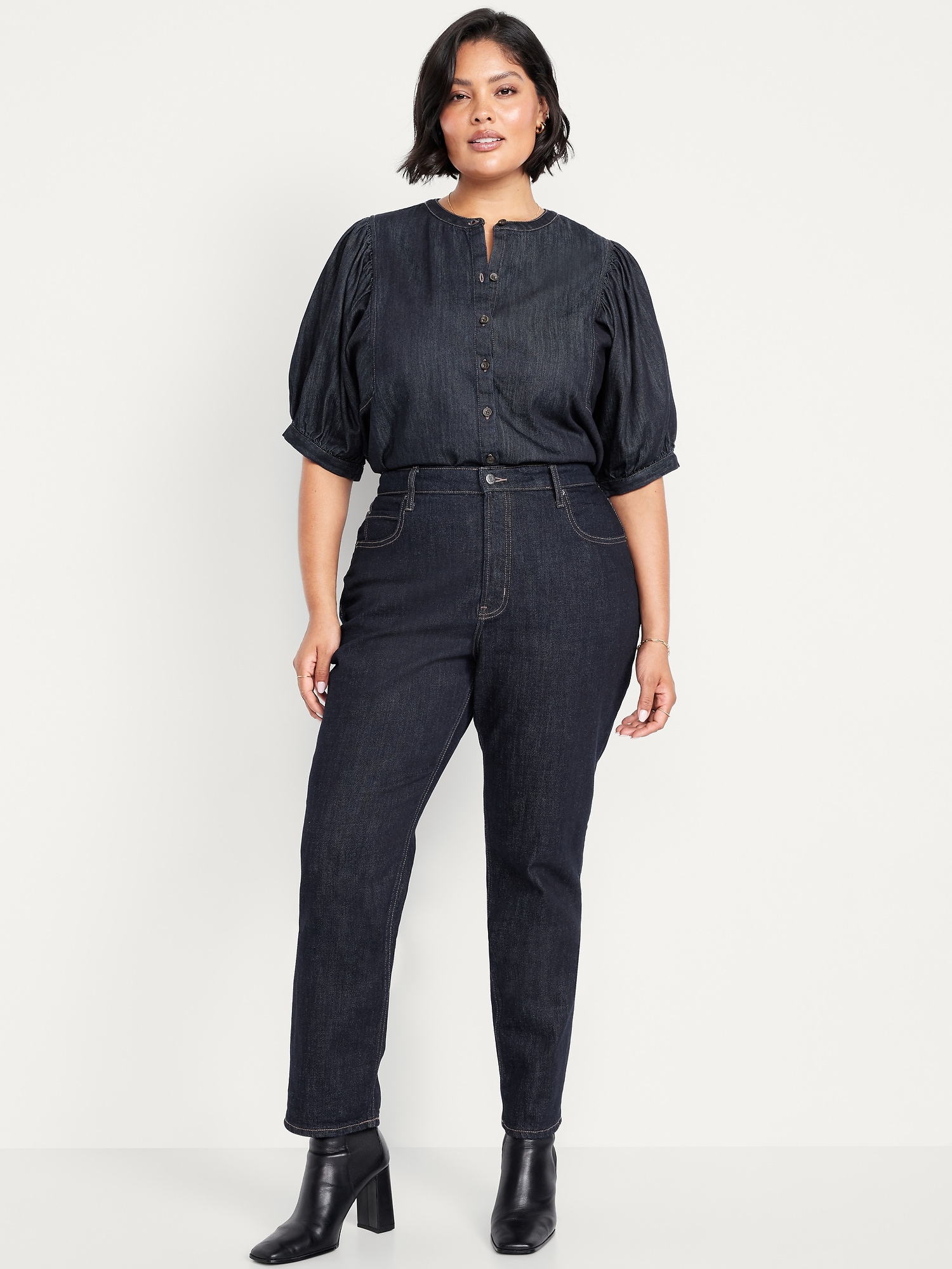 Curvy Extra High-Waisted Straight Jeans: Our snatched waist jean with fuller hips.no-gap extra high waist, zip fly, straight leg, #805713