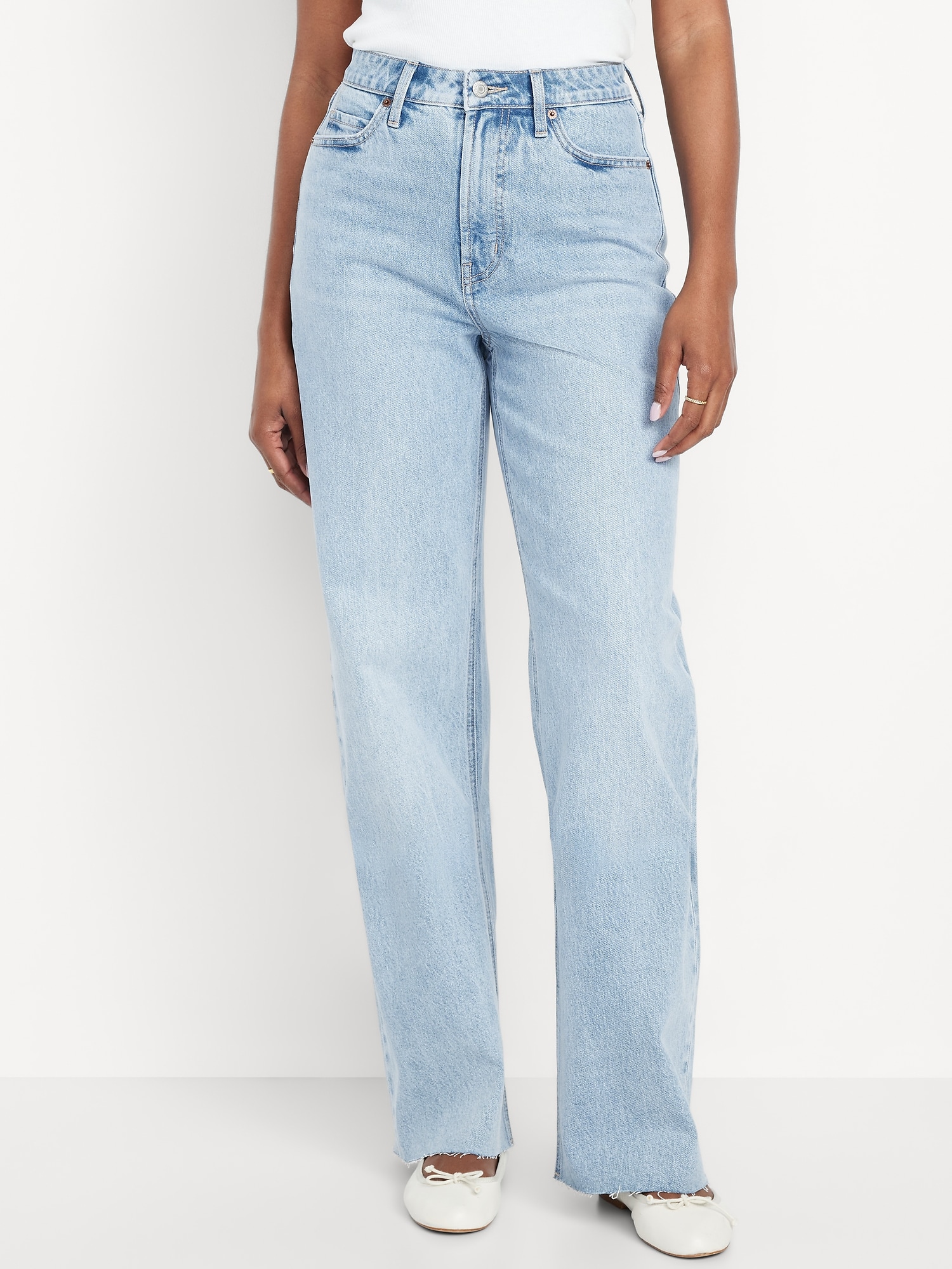 Curvy Extra High-Waisted Wide-Leg Jeans: A roomy wide leg with a smaller waist, fuller hips.no-gap extra high waist, zip fly, front scoop pockets, back patch pockets, ripped detail, #855940