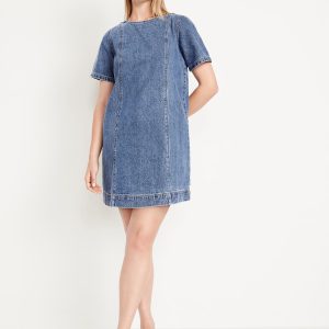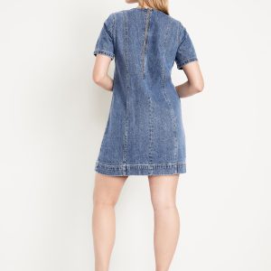 Denim Mini Dress: crew neck, short sleeves, center back zipper, seamed front and back, #798224