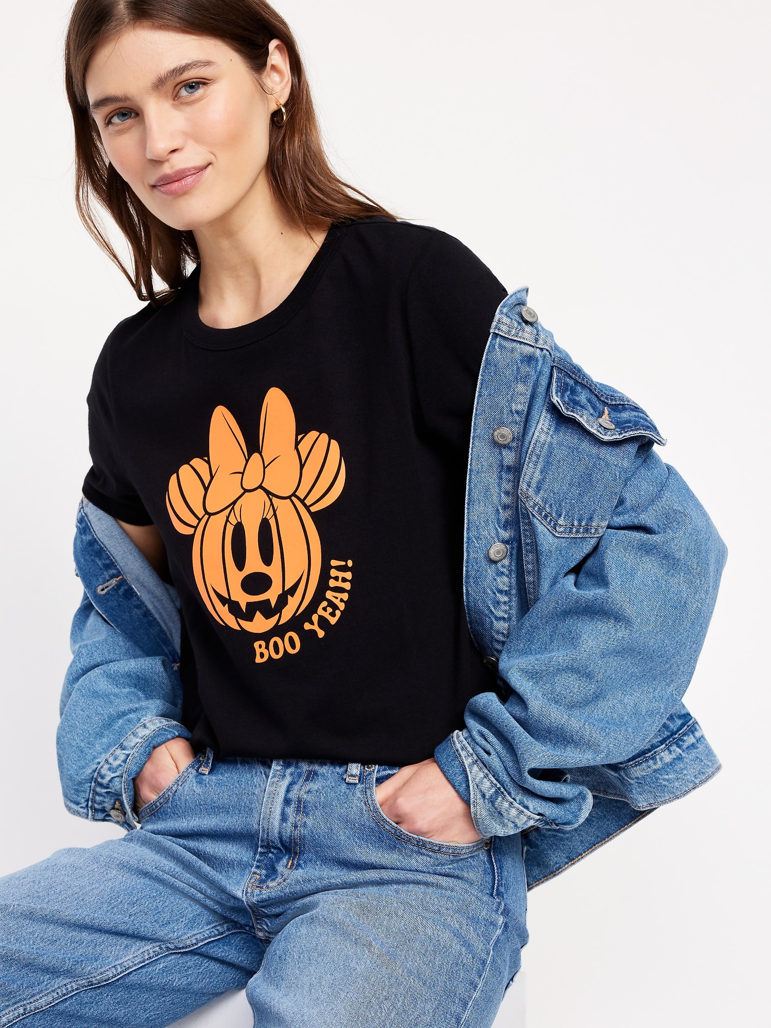 Disney© Minnie Mouse Halloween T-Shirt: rib-knit crew neck, short sleeves, licensed graphic matches back to the fam, © Disney, #805706