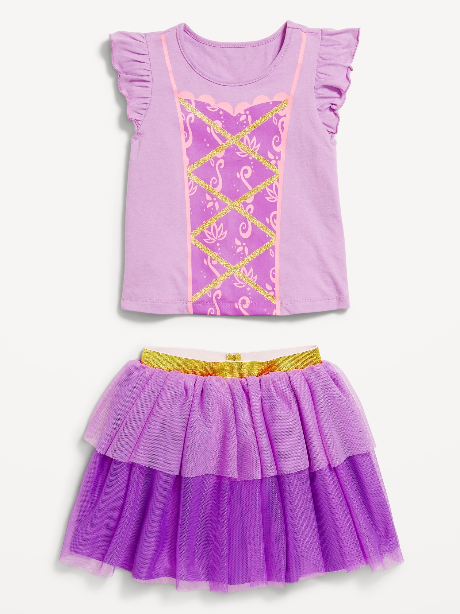 Disney© Princess T-Shirt and Tutu Skirt Set for Toddler Girls: crew neck, short ruffled sleeves, licensed graphic at front, matching flared tutu skirt, elasticized waistband, ©Disney, #805554
