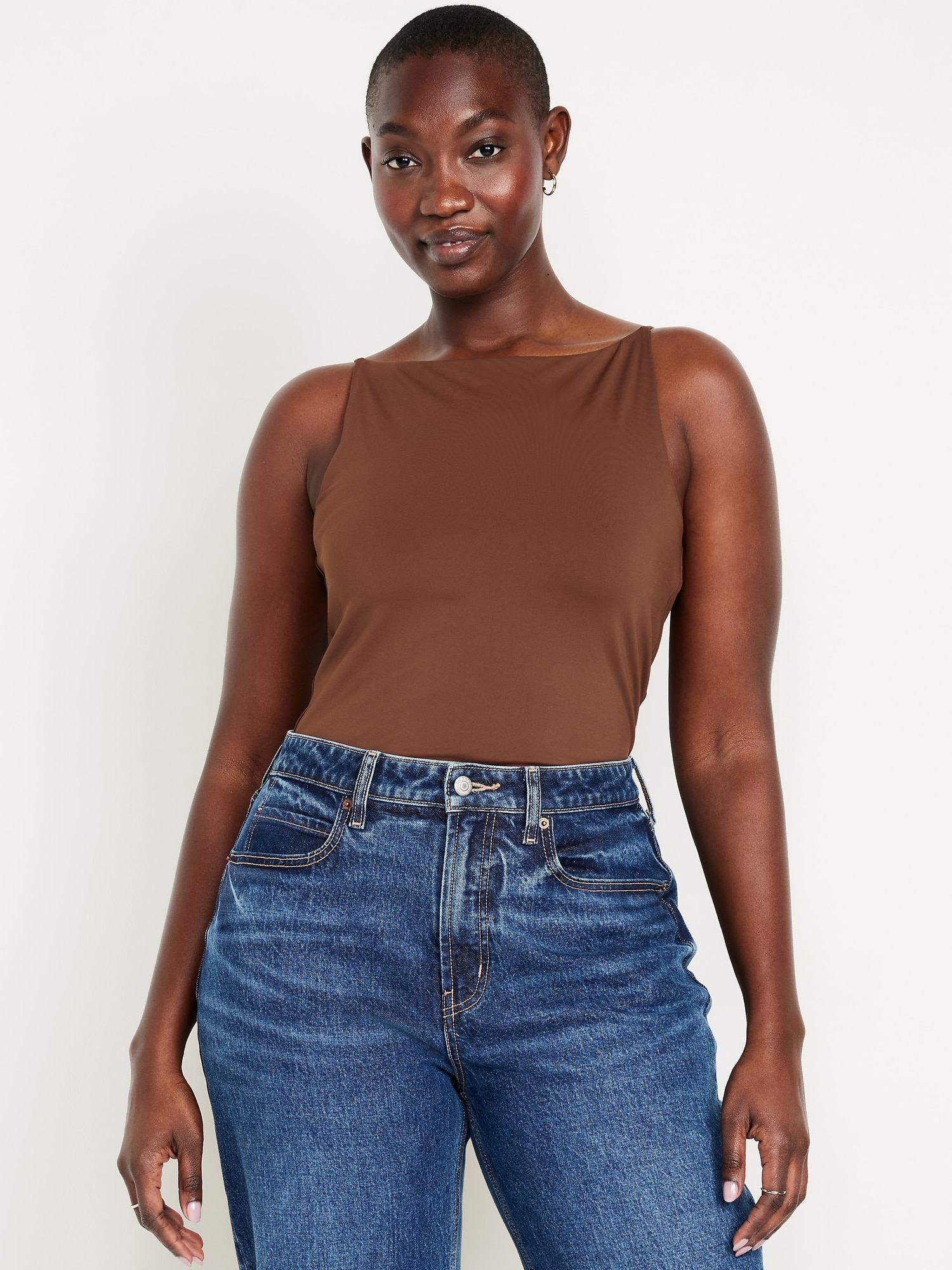Double-Layer Cami Bodysuit: high cami neck, sleeveless, snaps at inseam, #686657