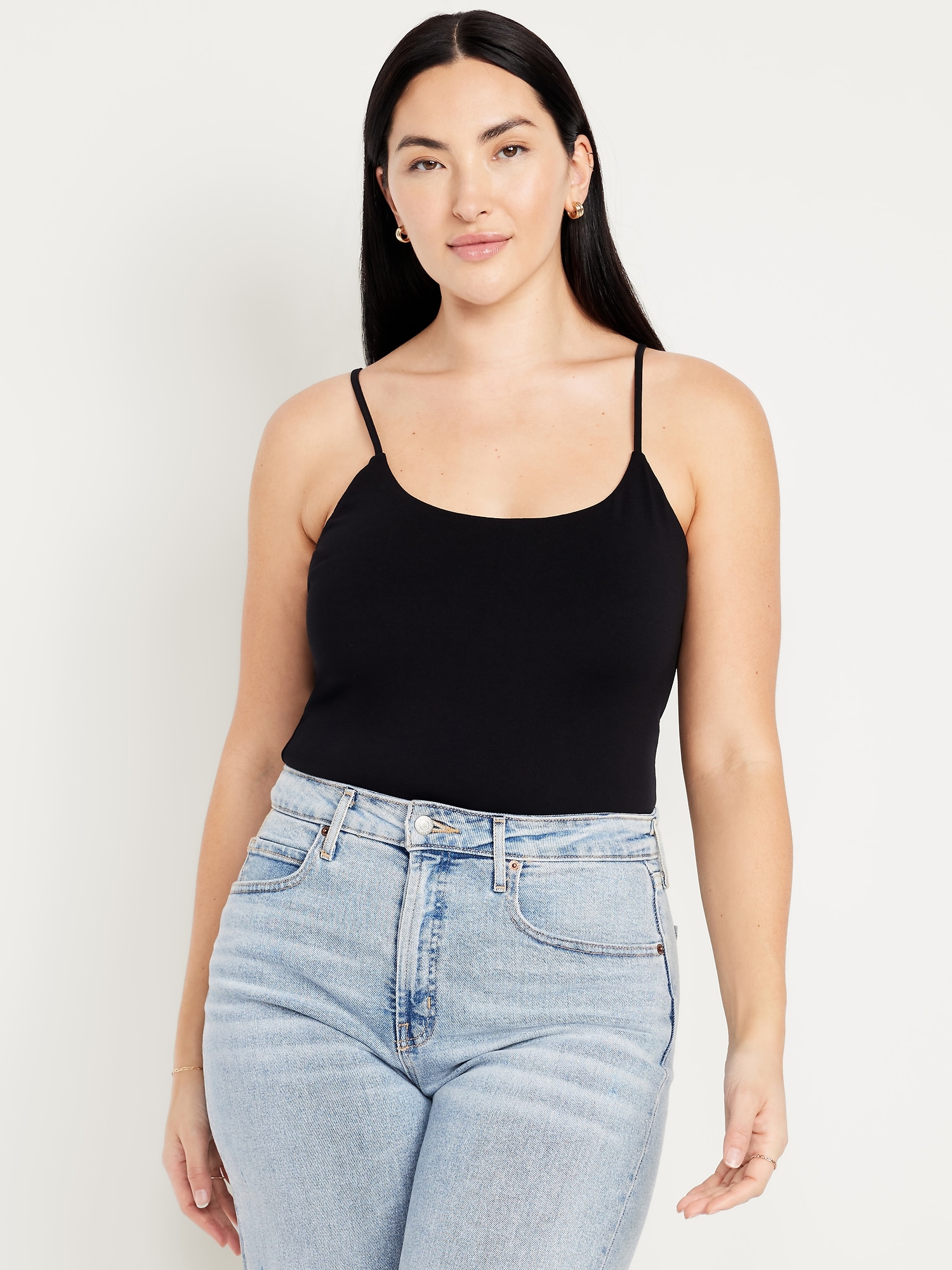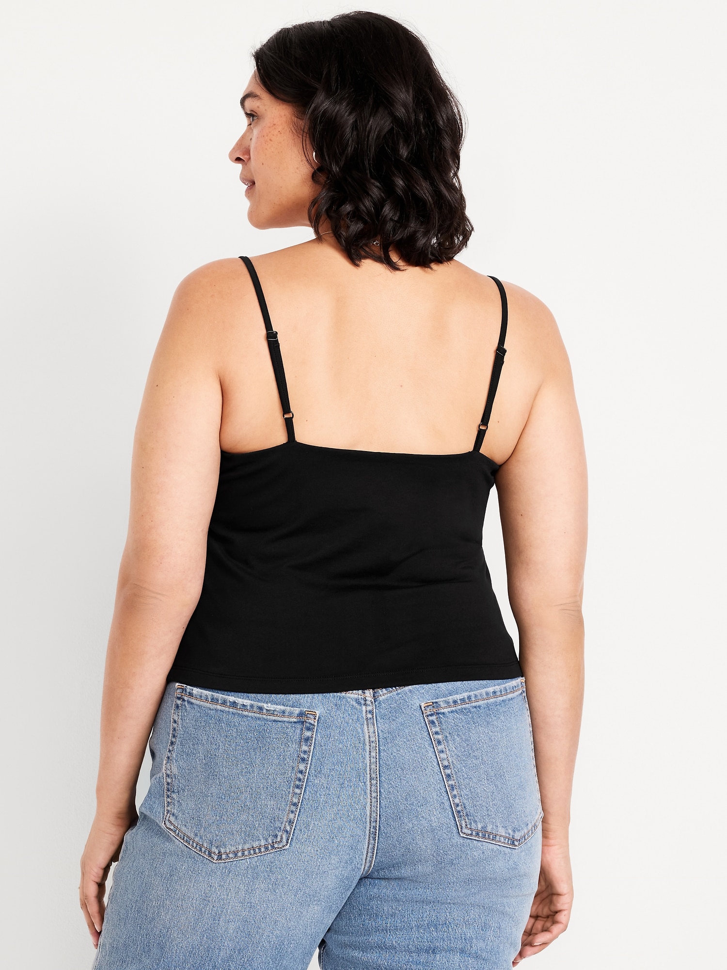 Double-Layer Cropped Cami Top: scoop neck, adjustable spaghetti straps, #747872