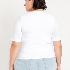 Double-Layer Elbow-Sleeve Scoop-Neck T-Shirt