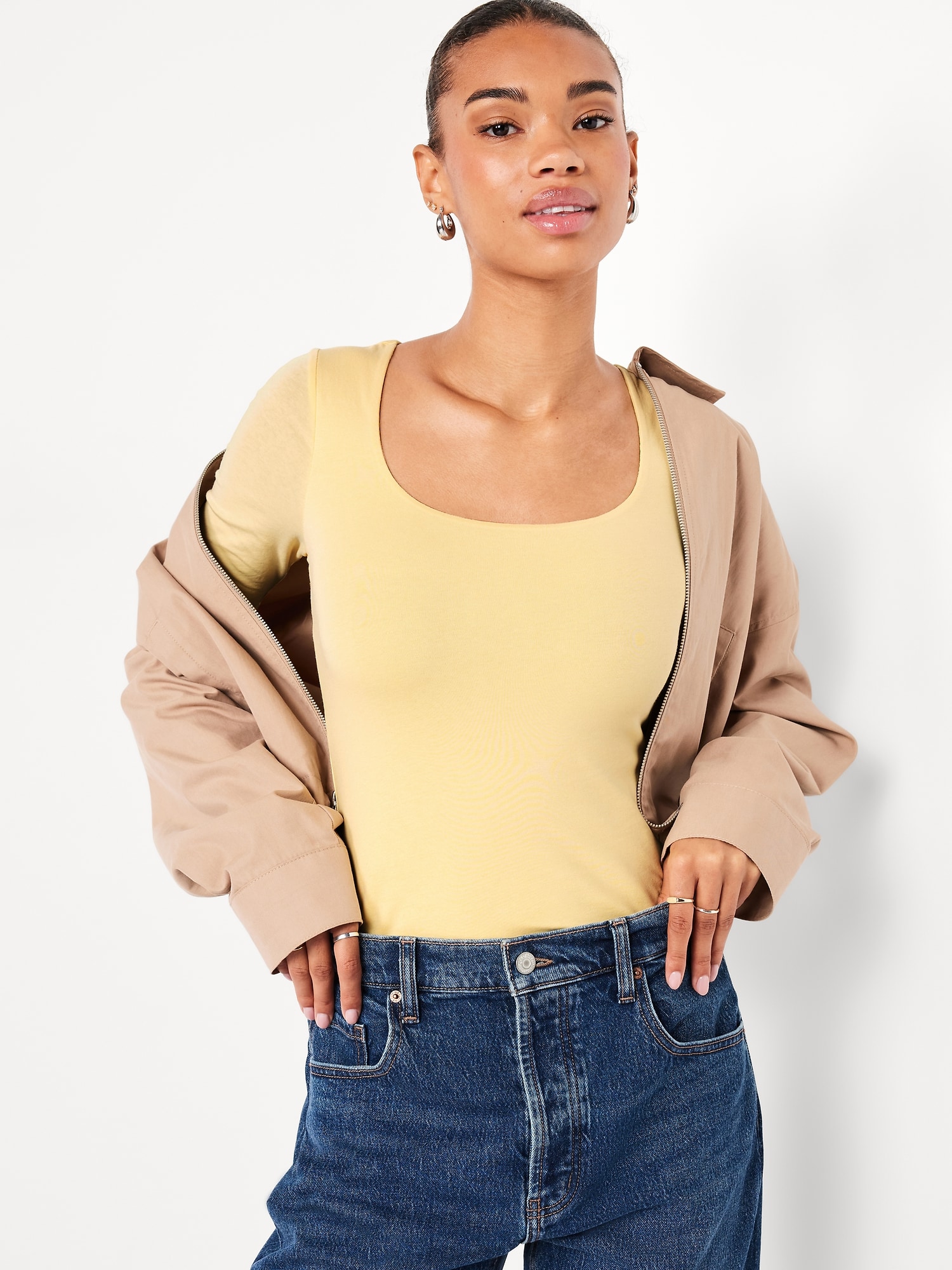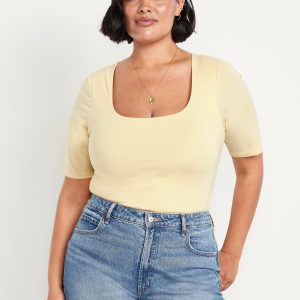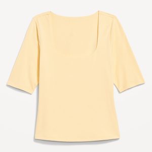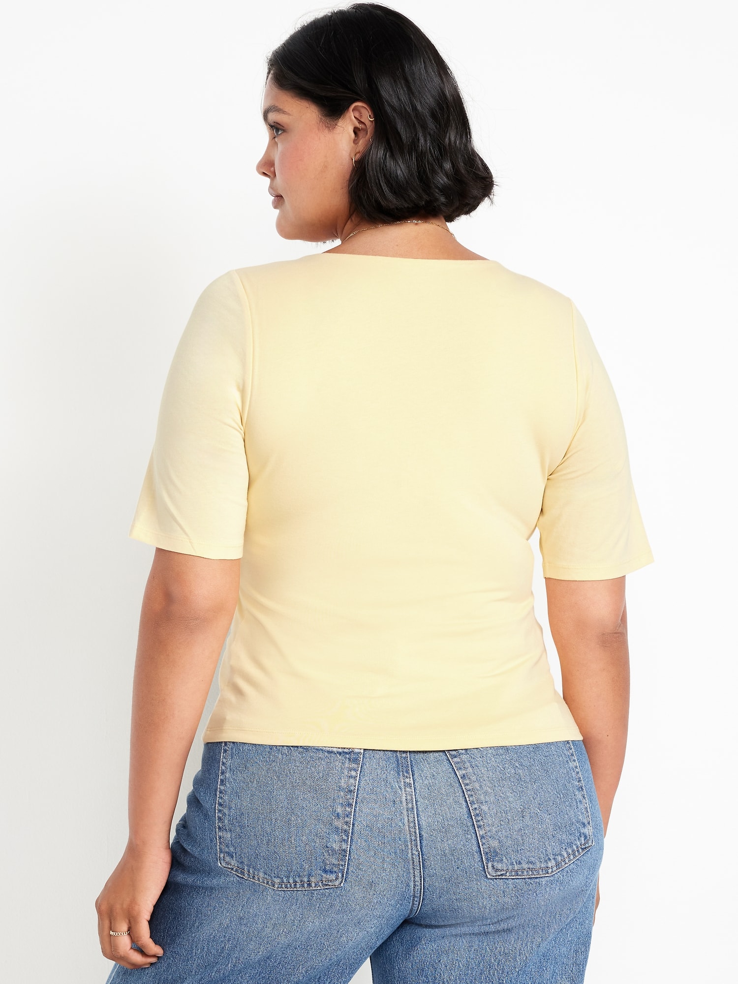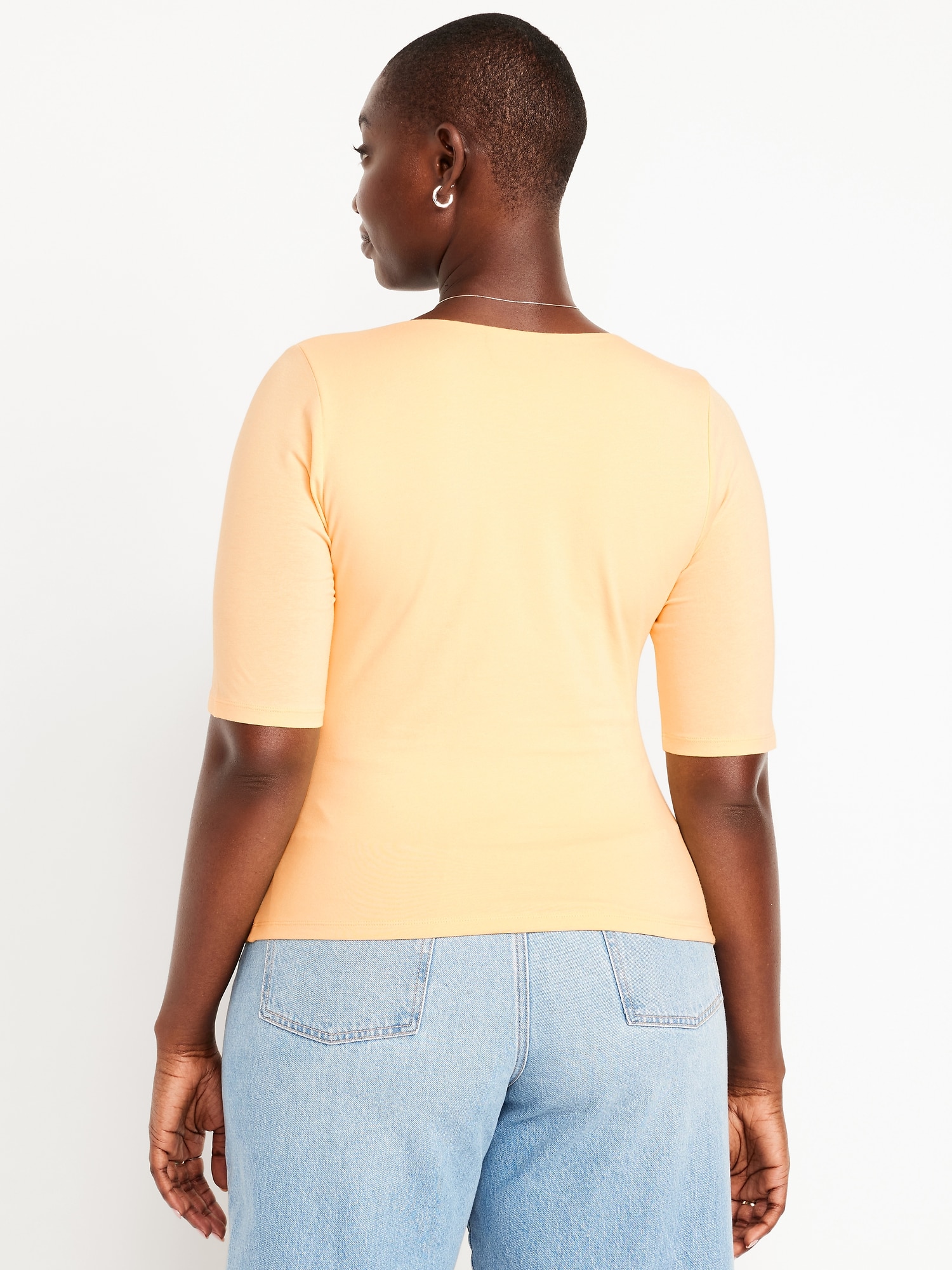 Double-Layer Elbow-Sleeve Scoop-Neck T-Shirt: scoop neck, short sleeves, #749283