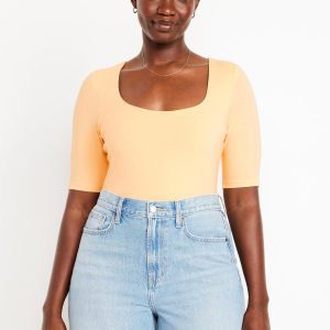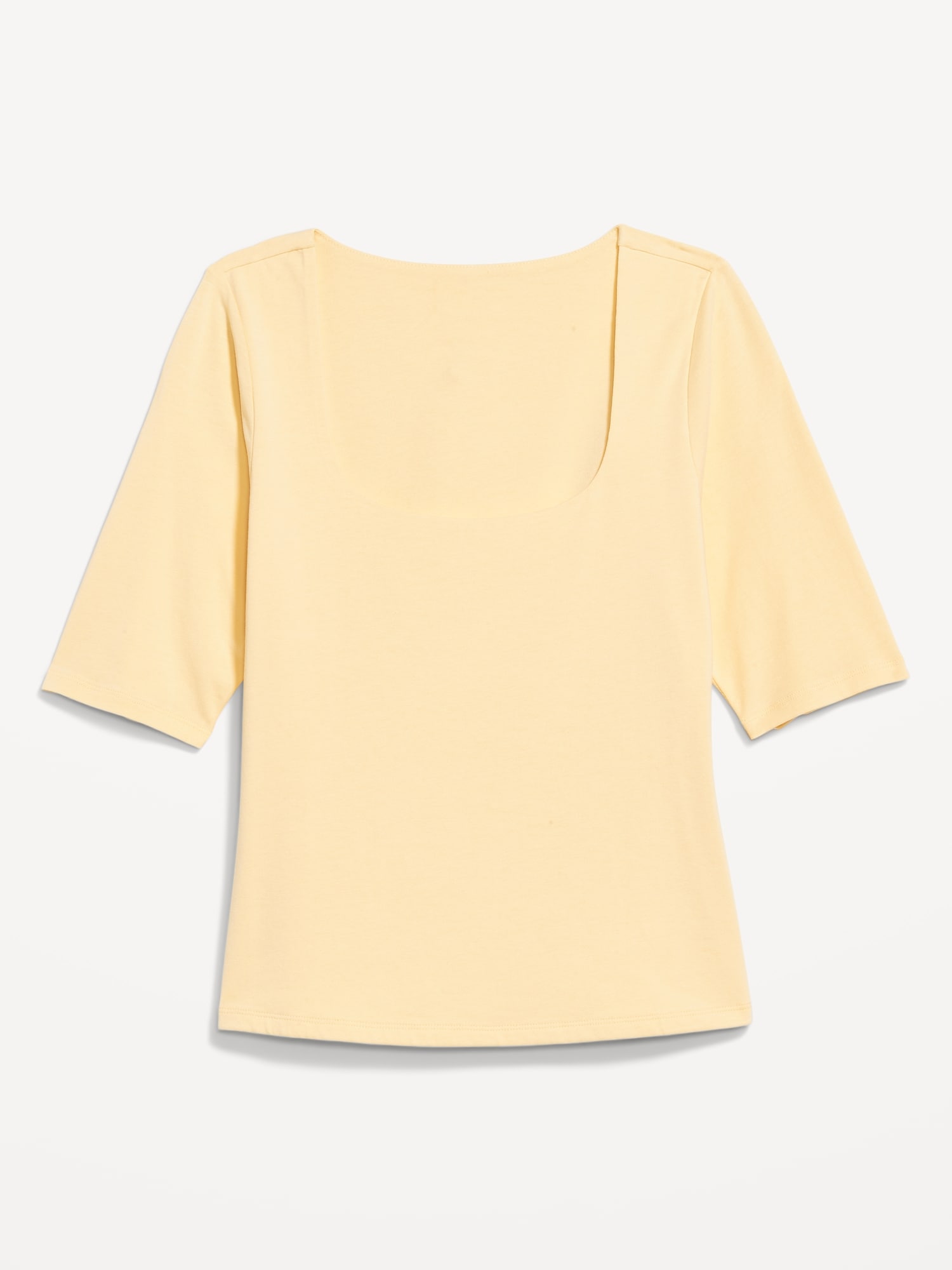 Double-Layer Elbow-Sleeve Scoop-Neck T-Shirt