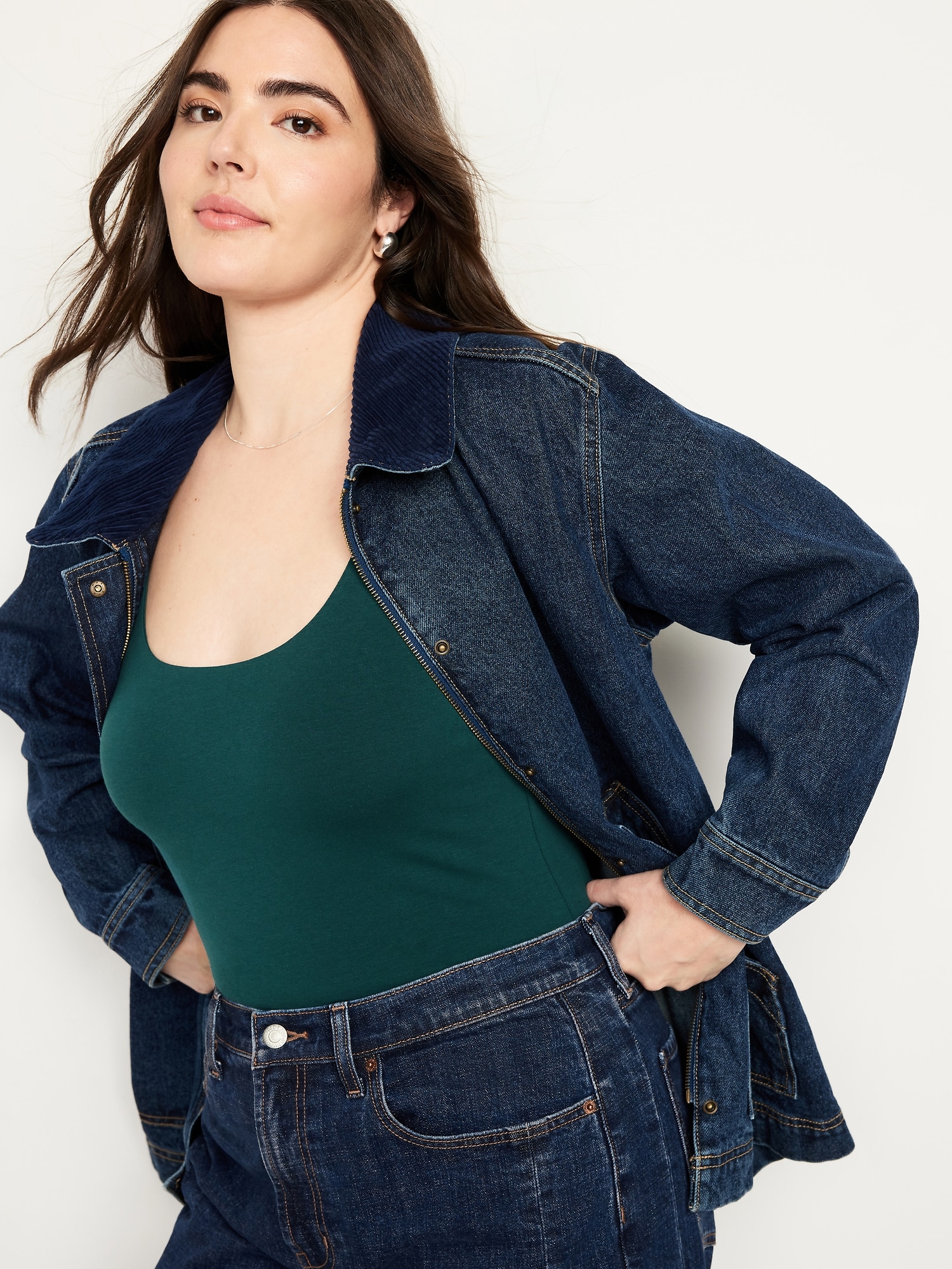 Double-Layer Scoop-Neck Bodysuit: scoop neck, wide straps, snaps at inseam, #683485