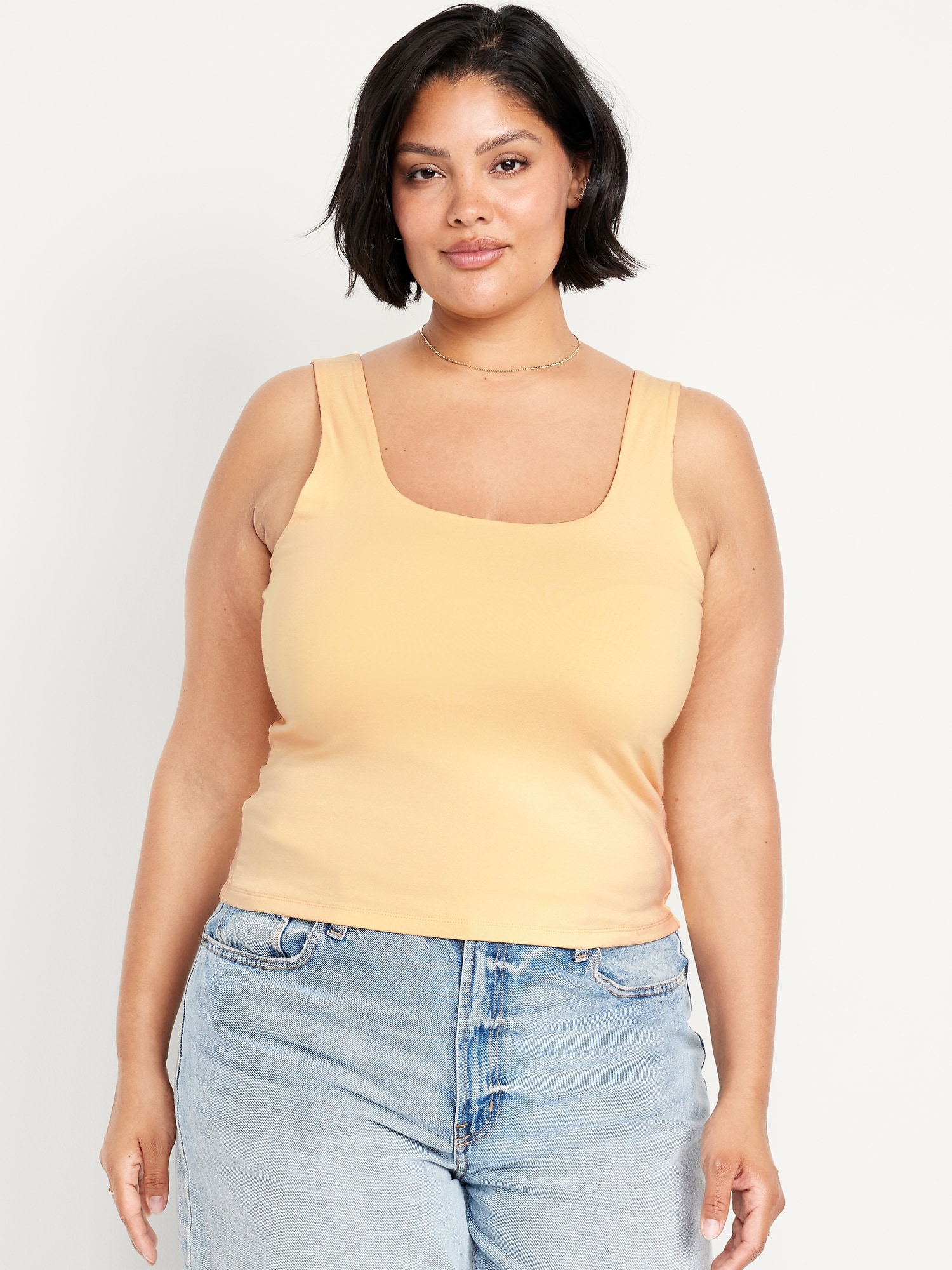 Double-Layer Scoop-Neck Tank Top: scoop neck, wide straps, scoop back, #692926