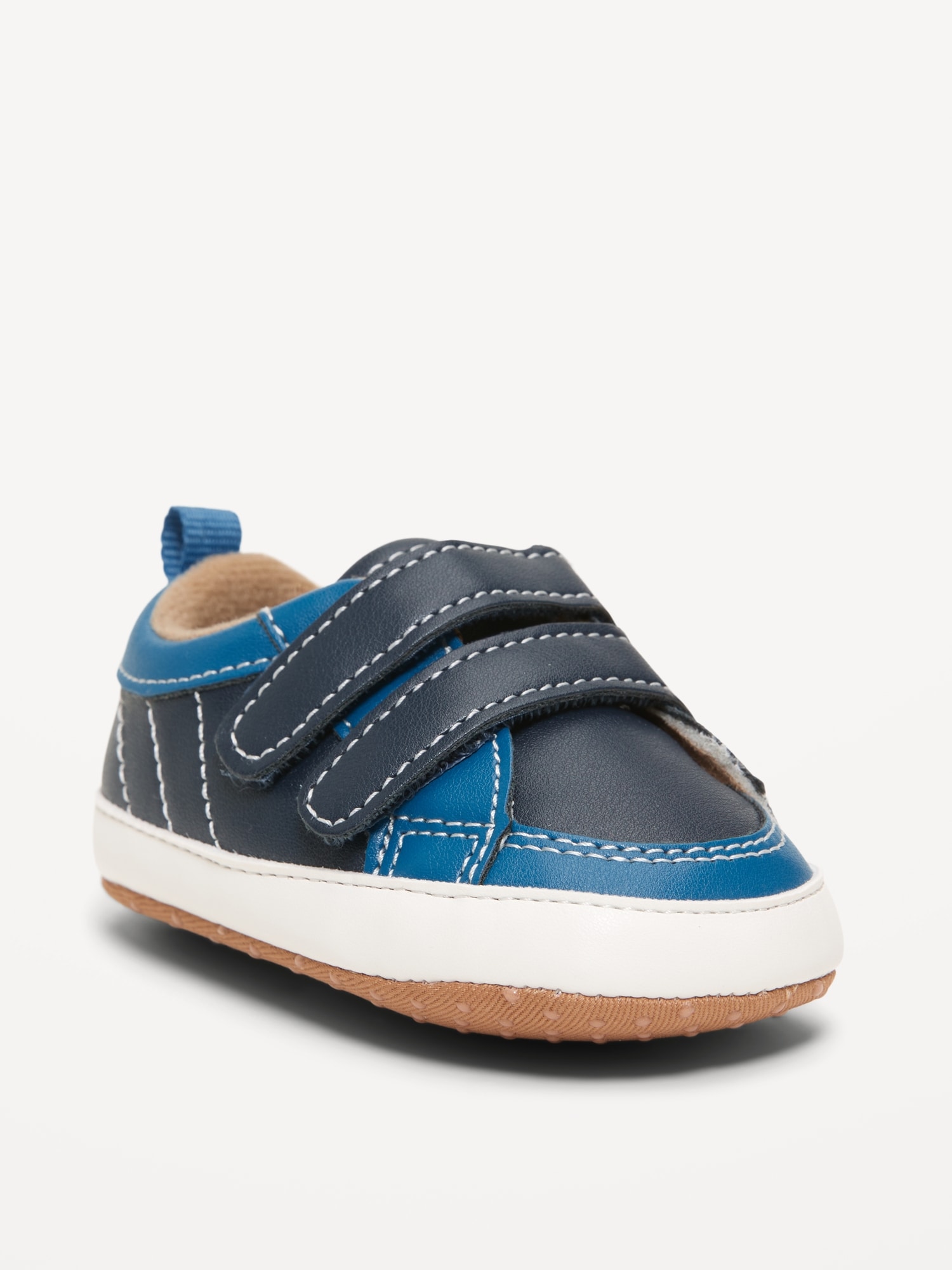 Double Secure-Strap Faux-Leather Sneakers for Baby: adhesive secure close straps, cushioned foot bed, gripper dots at outsole, pull tab at heel, #800499