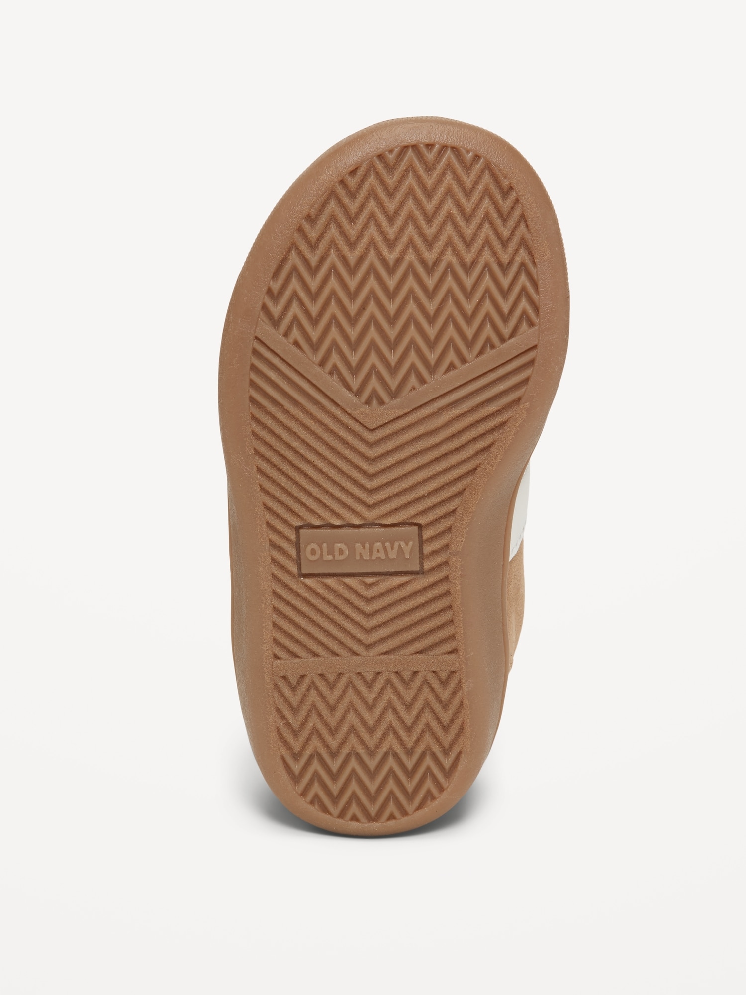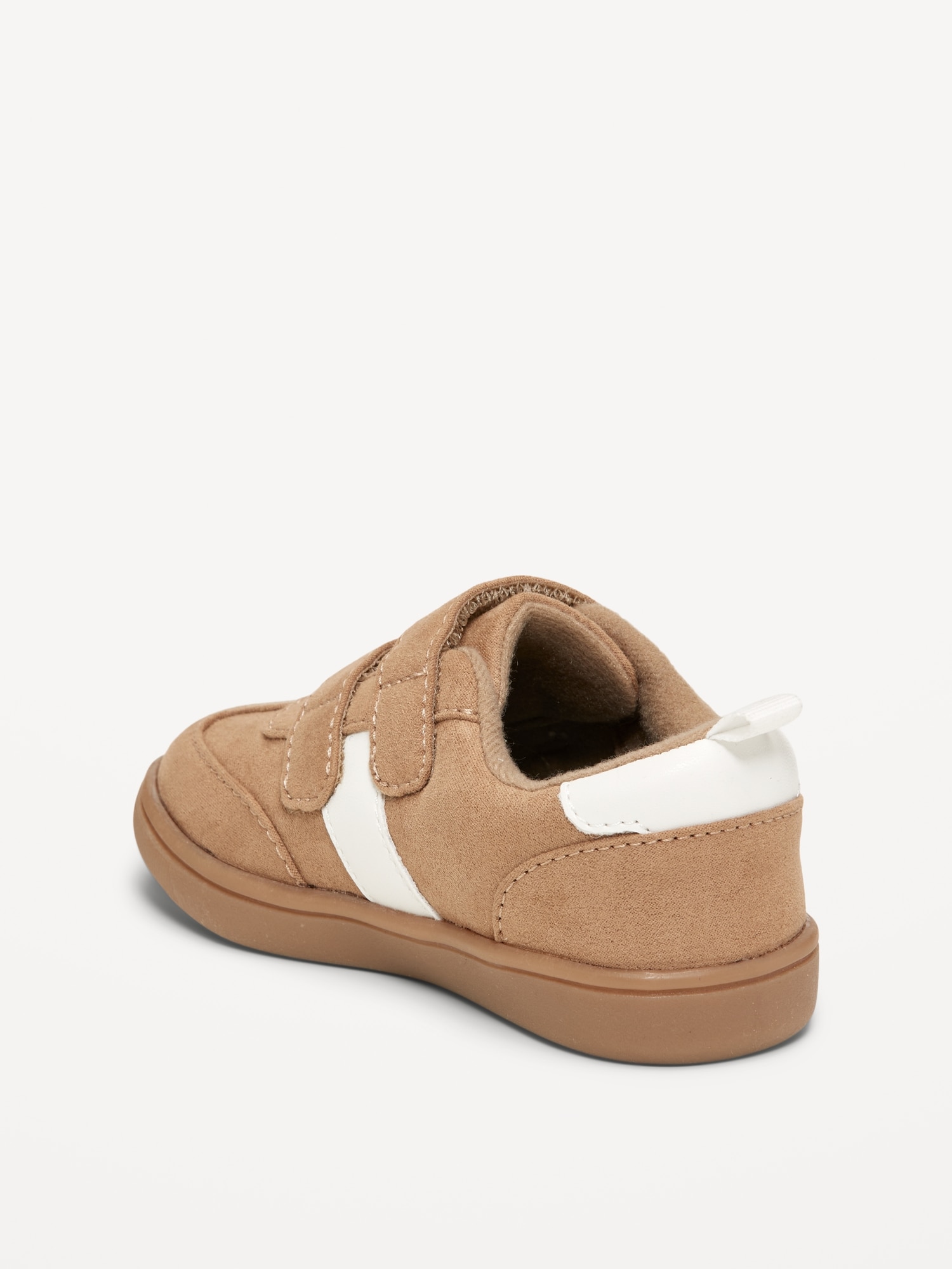 Double Secure-Strap Faux-Suede Sneakers for Toddler Boys: adhesive secure close straps, cushioned foot bed, rubber midsole, pull tab at heel, #804394
