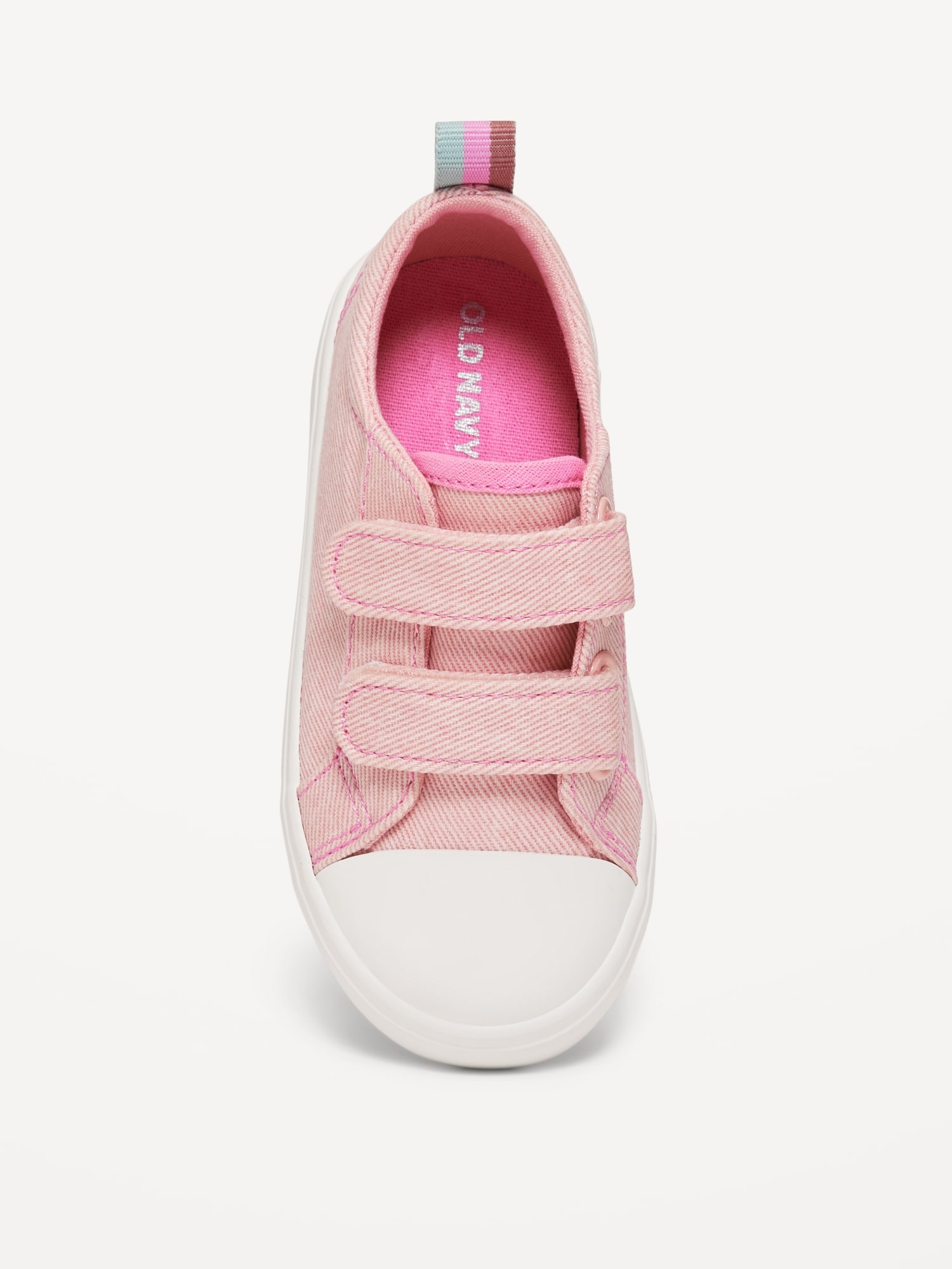 Double Secure-Strap Twill Sneakers for Toddler Girls: adhesive secure close straps, cushioned foot bed, rubber midsole, pull tab at heel, #722185