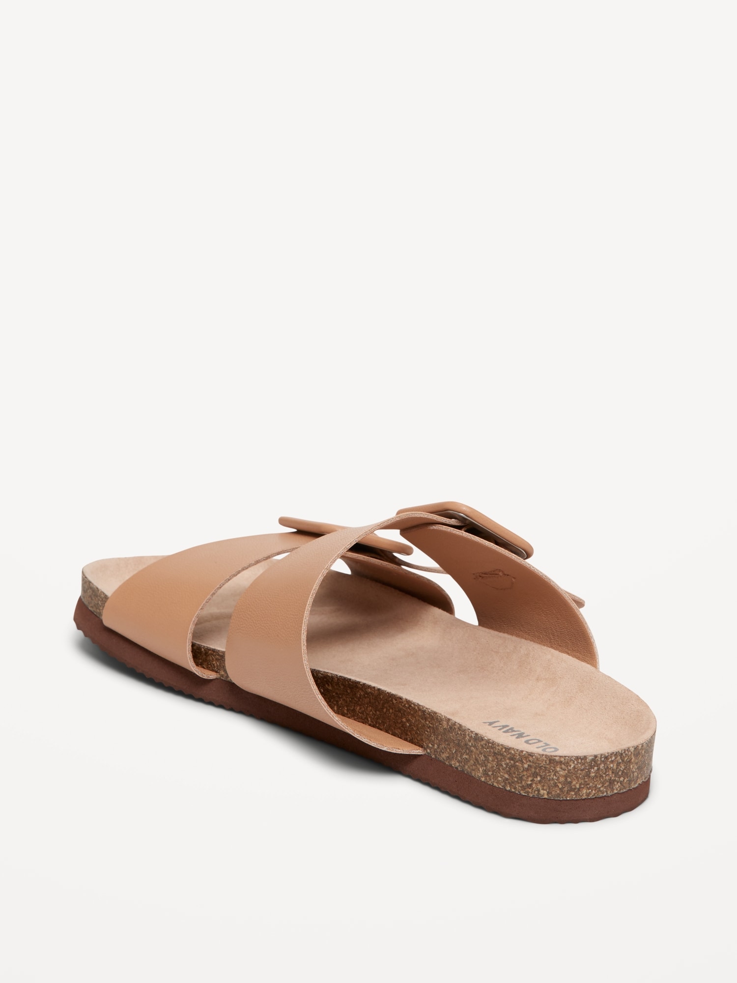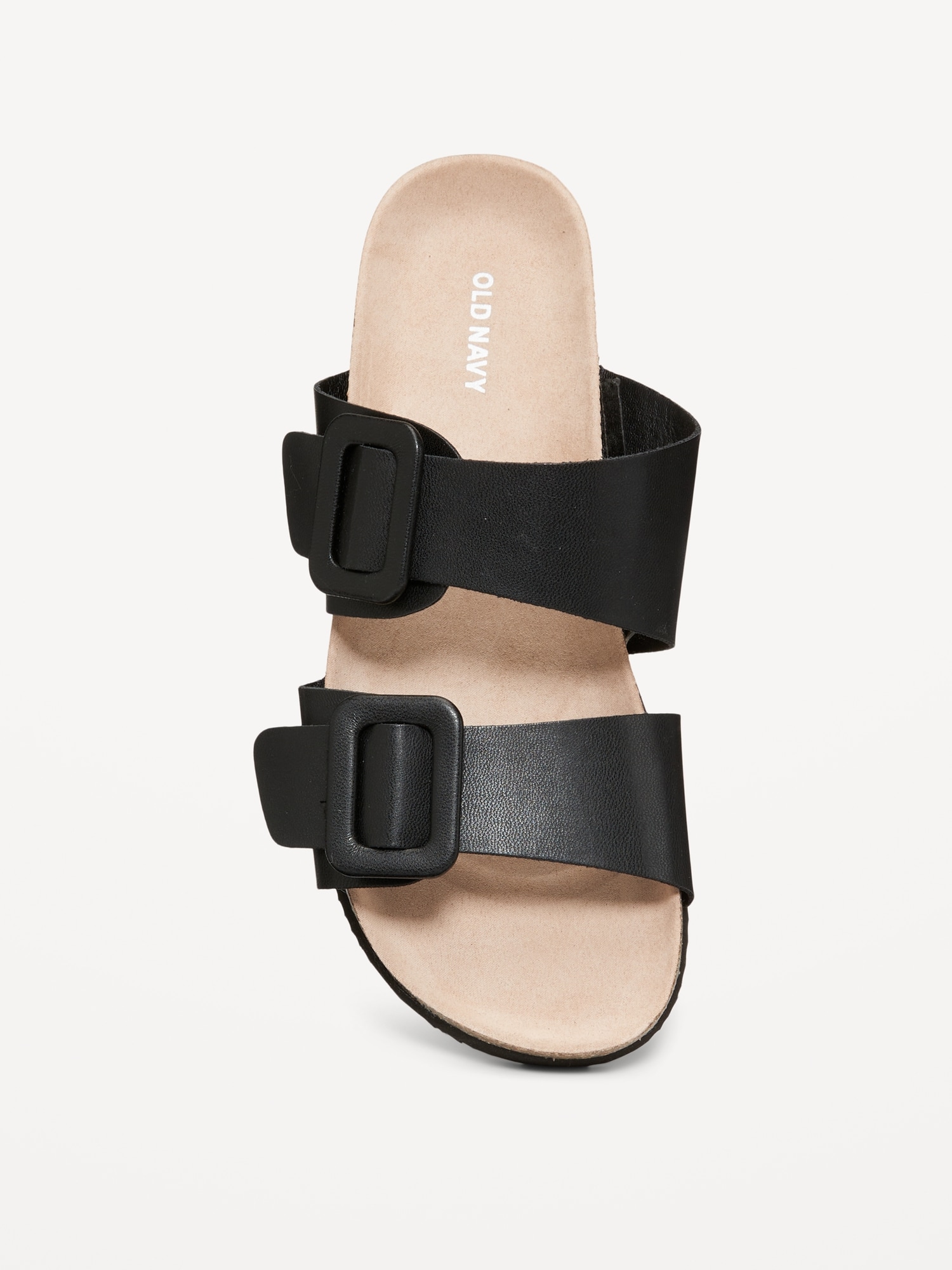 Double-Strap Earth Sandal: faux leather upper, contoured foot bed, easy slide-on style, #663898