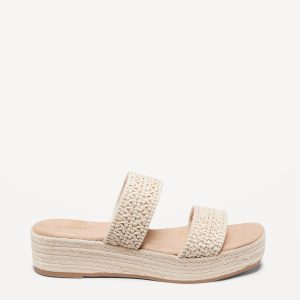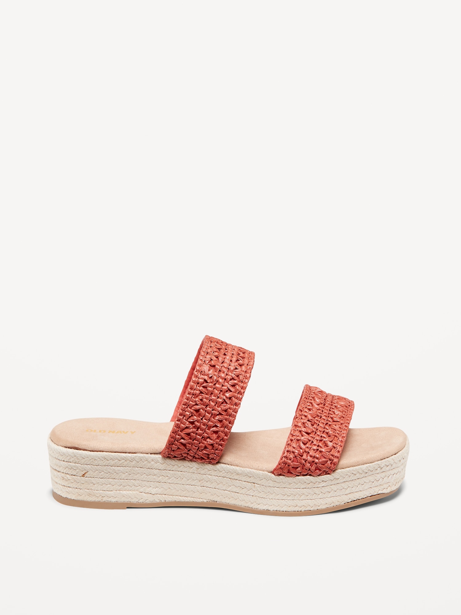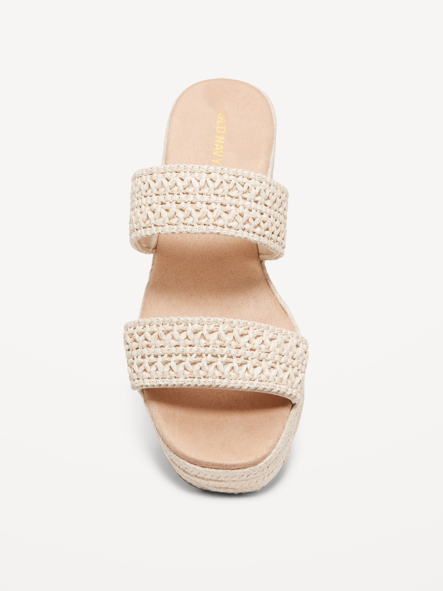 Double-Strap Espadrille Sandals: jute platform upper, cushioned foot bed, woven straps, #663884