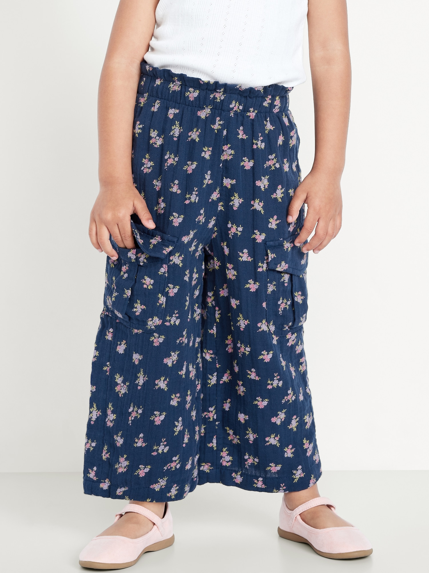 Double-Weave Wide-Leg Cargo Pants for Toddler Girls: ruffled elasticized waistband, flap cargo utility pockets at each leg, wide leg, online exclusive, #762432