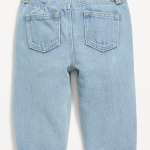 Drawstring Barrel-Leg Jeans for Baby: elasticized waistband, snap-button closure, nonfunctional drawstring, faux fly, decorative scoop pockets, patch pockets at back, barrel leg, #806247