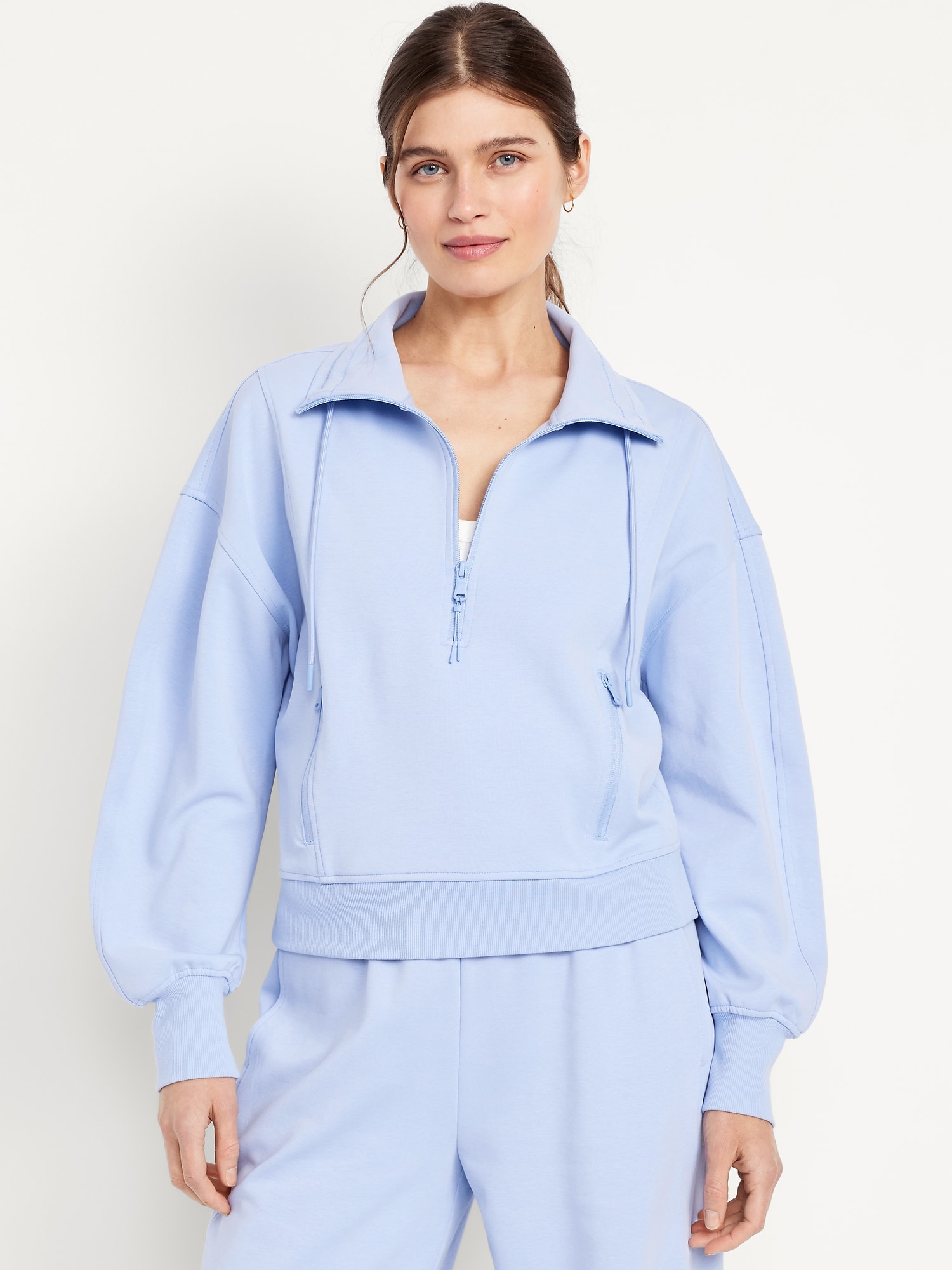 Dynamic Fleece Half-Zip Sweatshirt: Featuring Dynamic Fleece. Soft, smooth fleece plus made-to-move stretch.drawstring funnel neck, long sleeves, zip pockets, pullover style, #784417