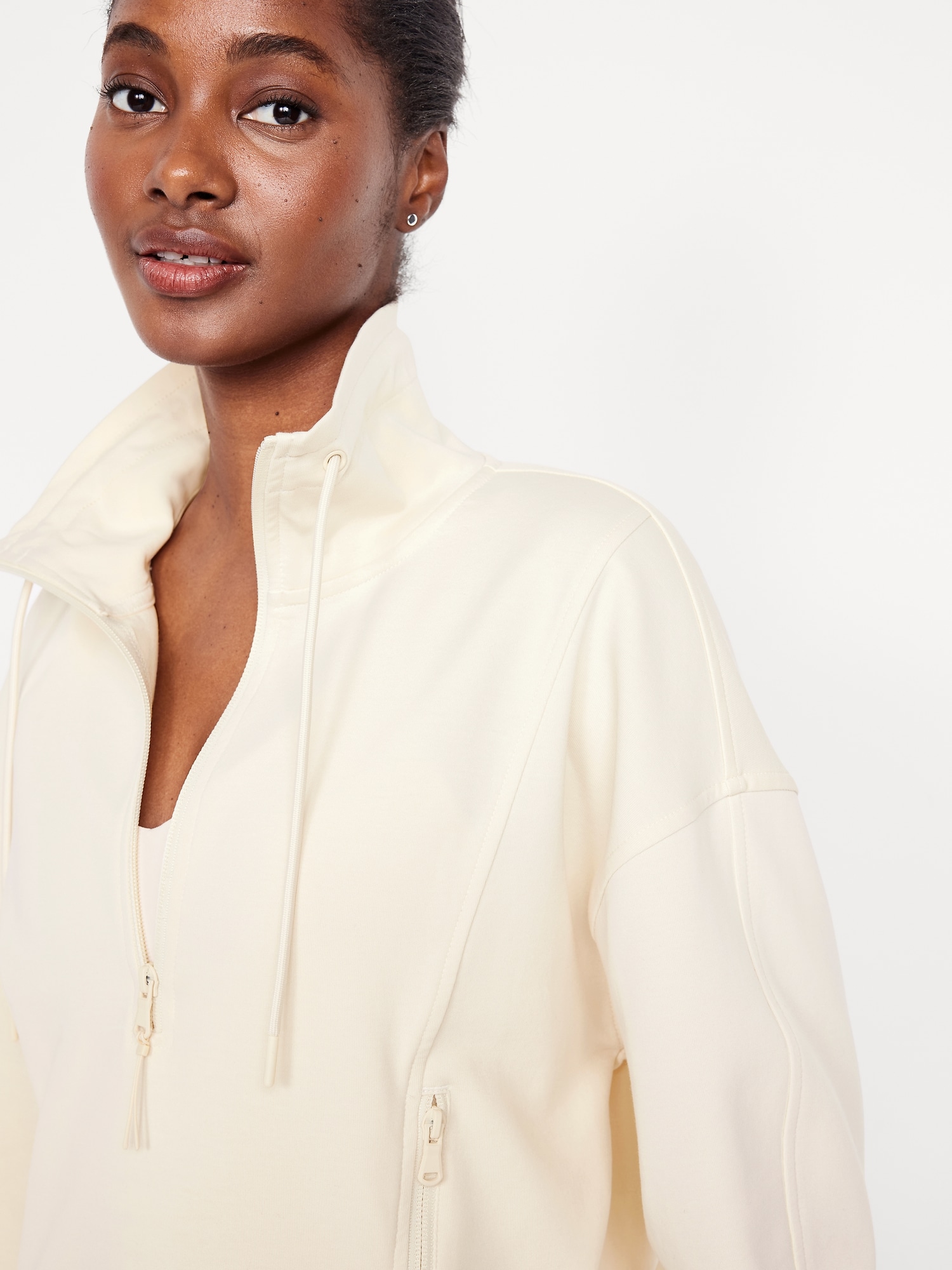 Dynamic Fleece Half-Zip Sweatshirt: Featuring Dynamic Fleece. Soft, smooth fleece plus made-to-move stretch.drawstring funnel neck, long sleeves, zip pockets, pullover style, #784417