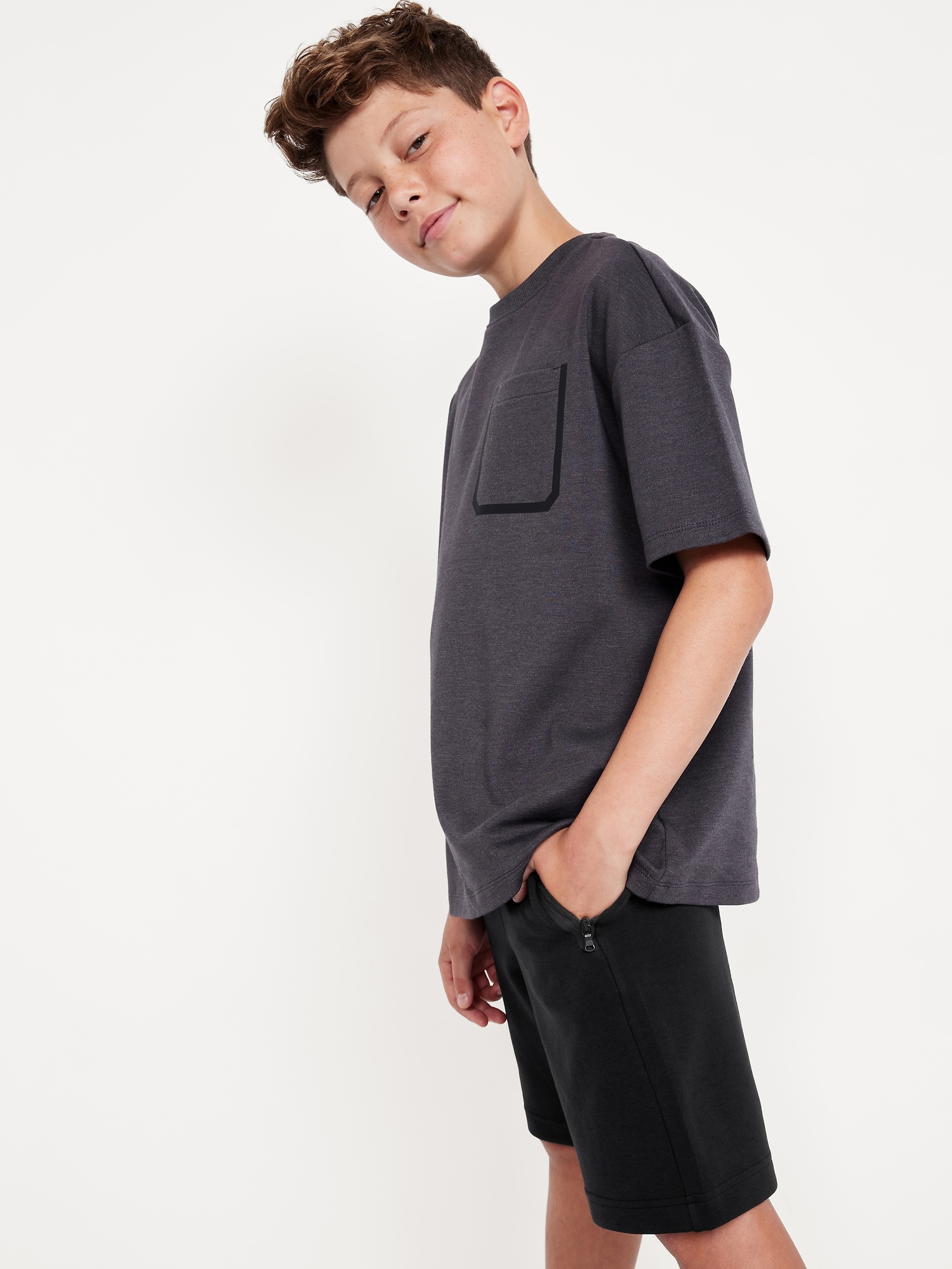 Dynamic Fleece Knee Length Shorts for Boys: elasticized waistband, functional drawstring, zippered pockets, #807203