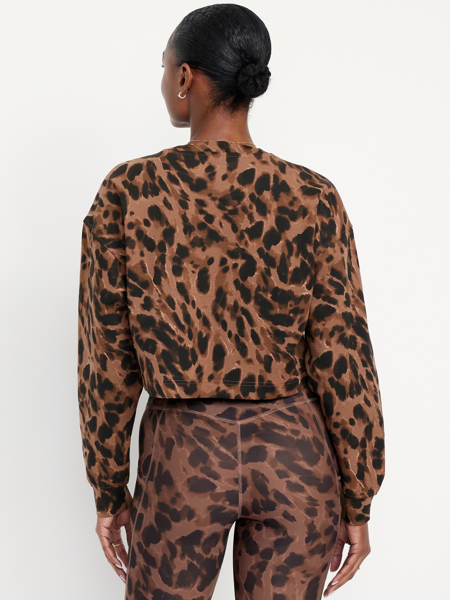 Dynamic Fleece Oversized Crop Sweatshirt: Featuring Dynamic Fleece. Soft, smooth fleece plus made-to-move stretch.rib-knit crew neck, long dolman sleeves, graphic varies, pullover style, #692129