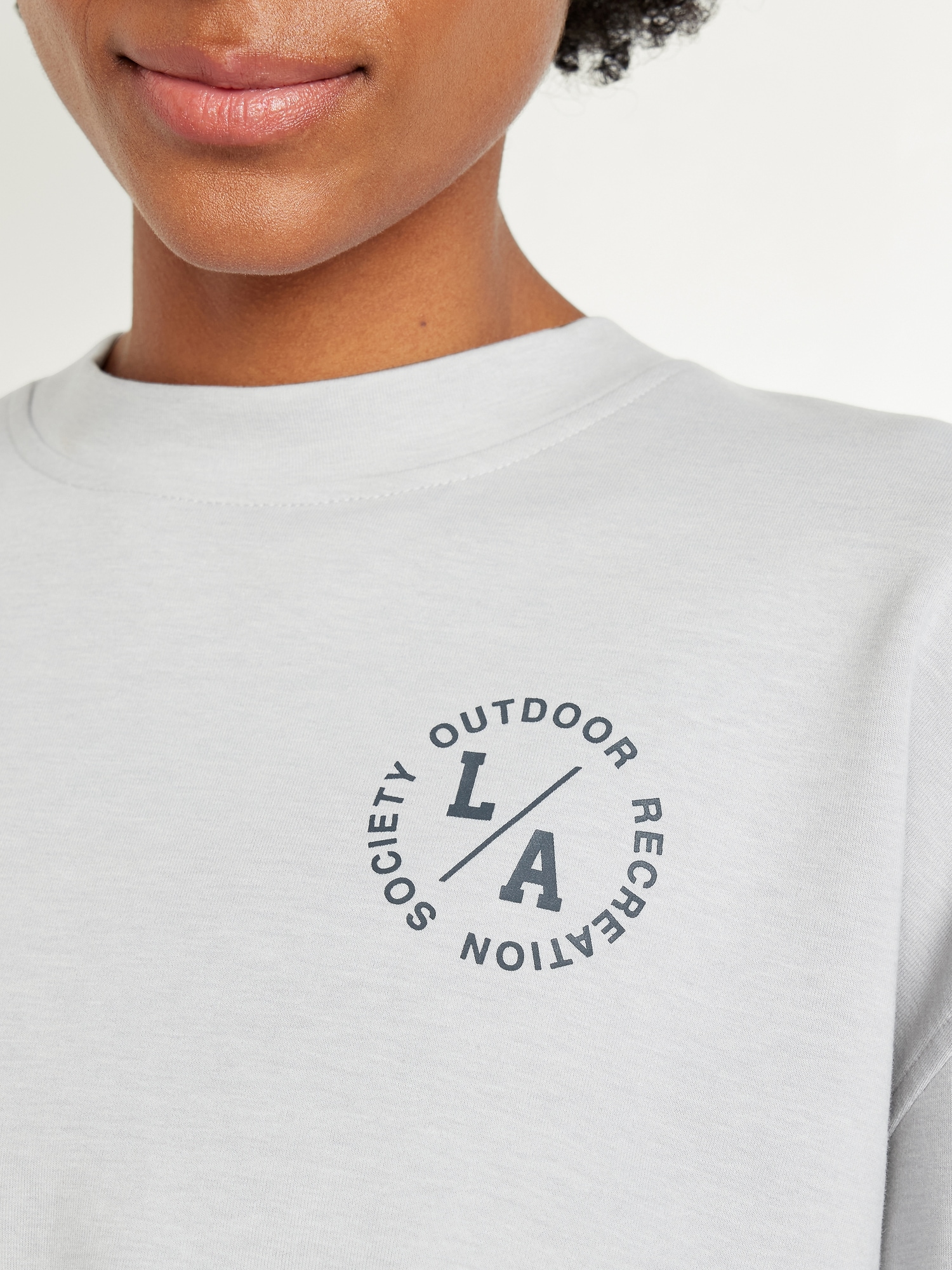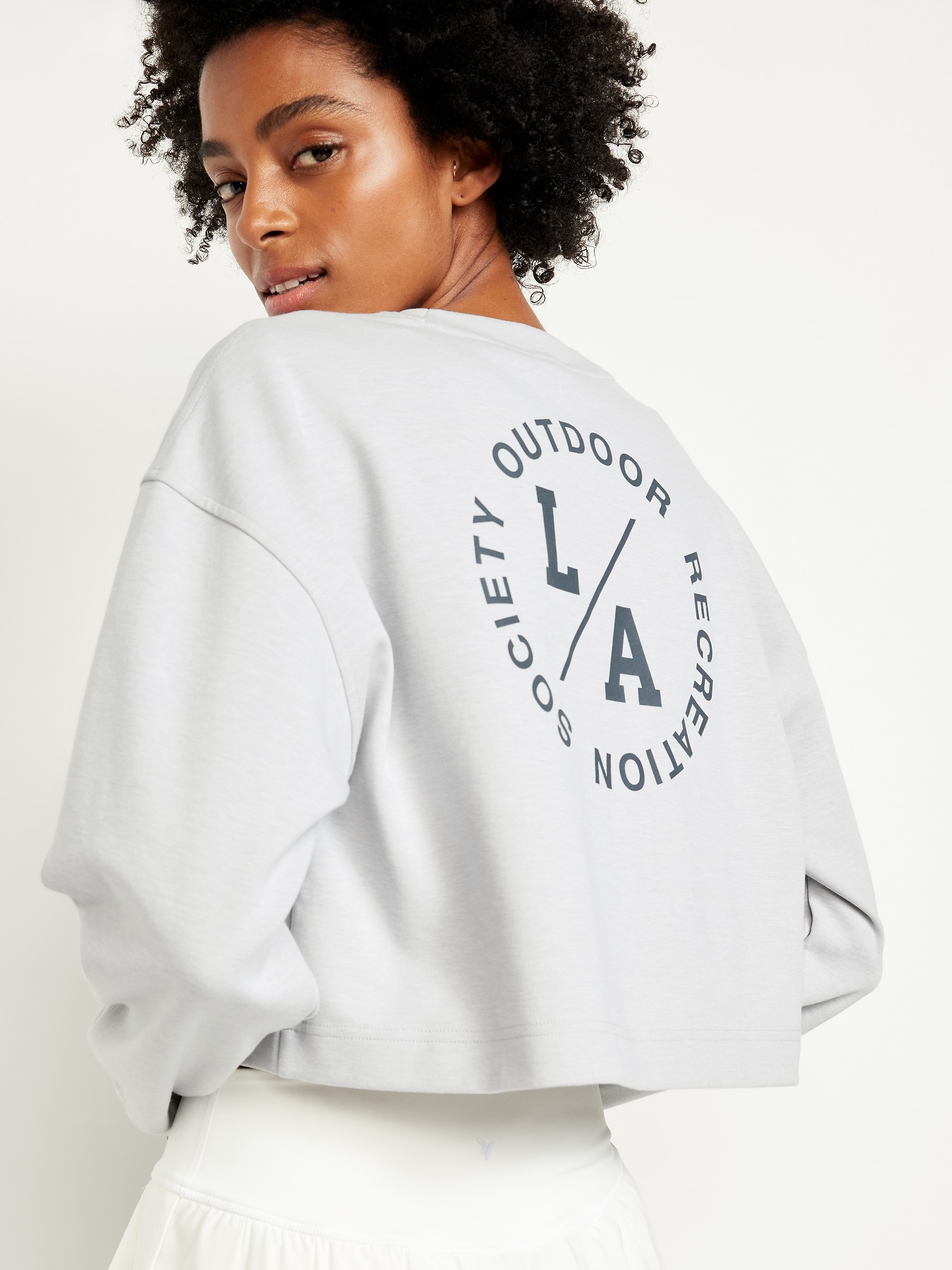Dynamic Fleece Oversized Crop Sweatshirt: Featuring Dynamic Fleece. Soft, smooth fleece plus made-to-move stretch.rib-knit crew neck, long dolman sleeves, graphic varies, pullover style, #692129