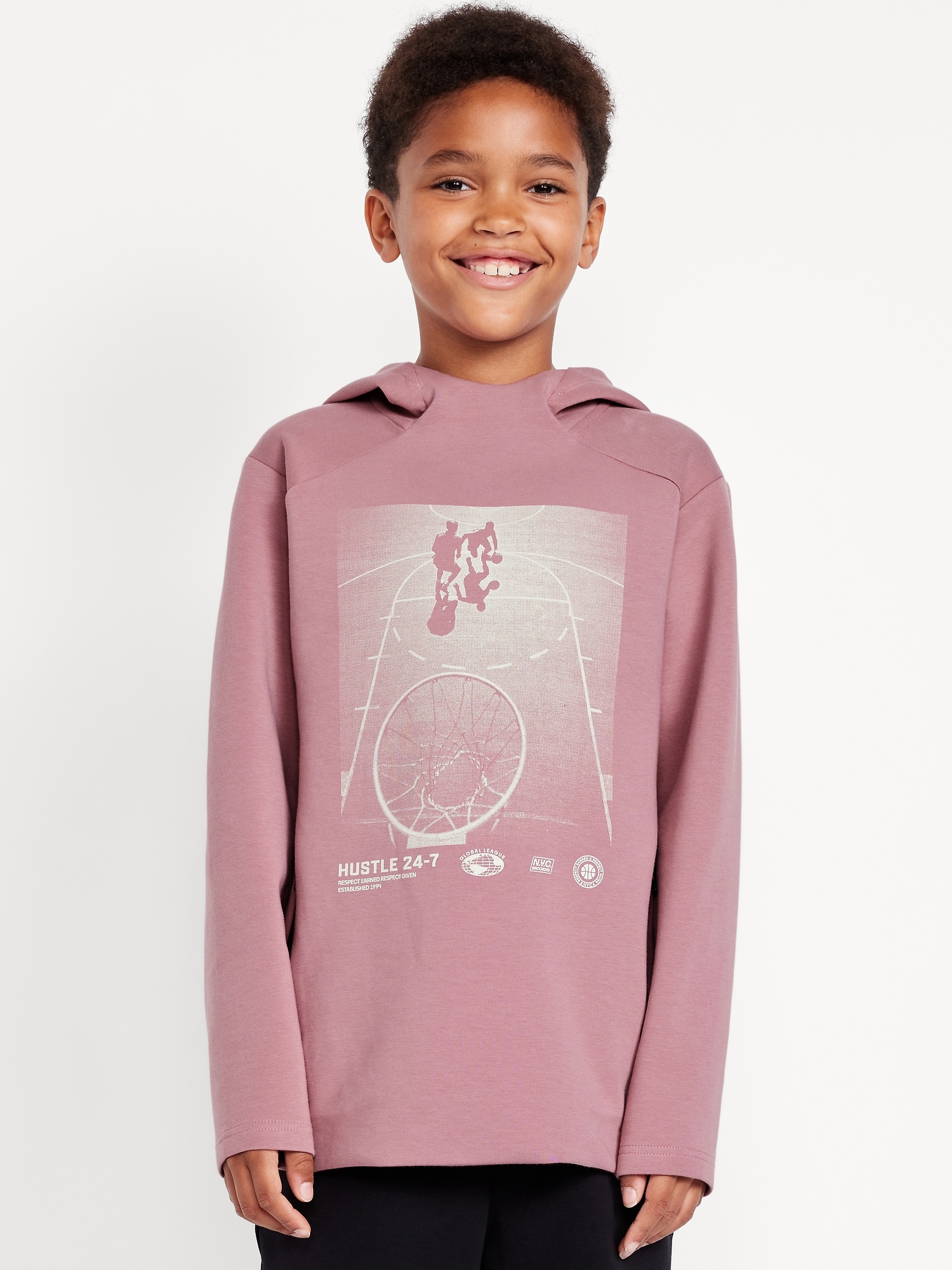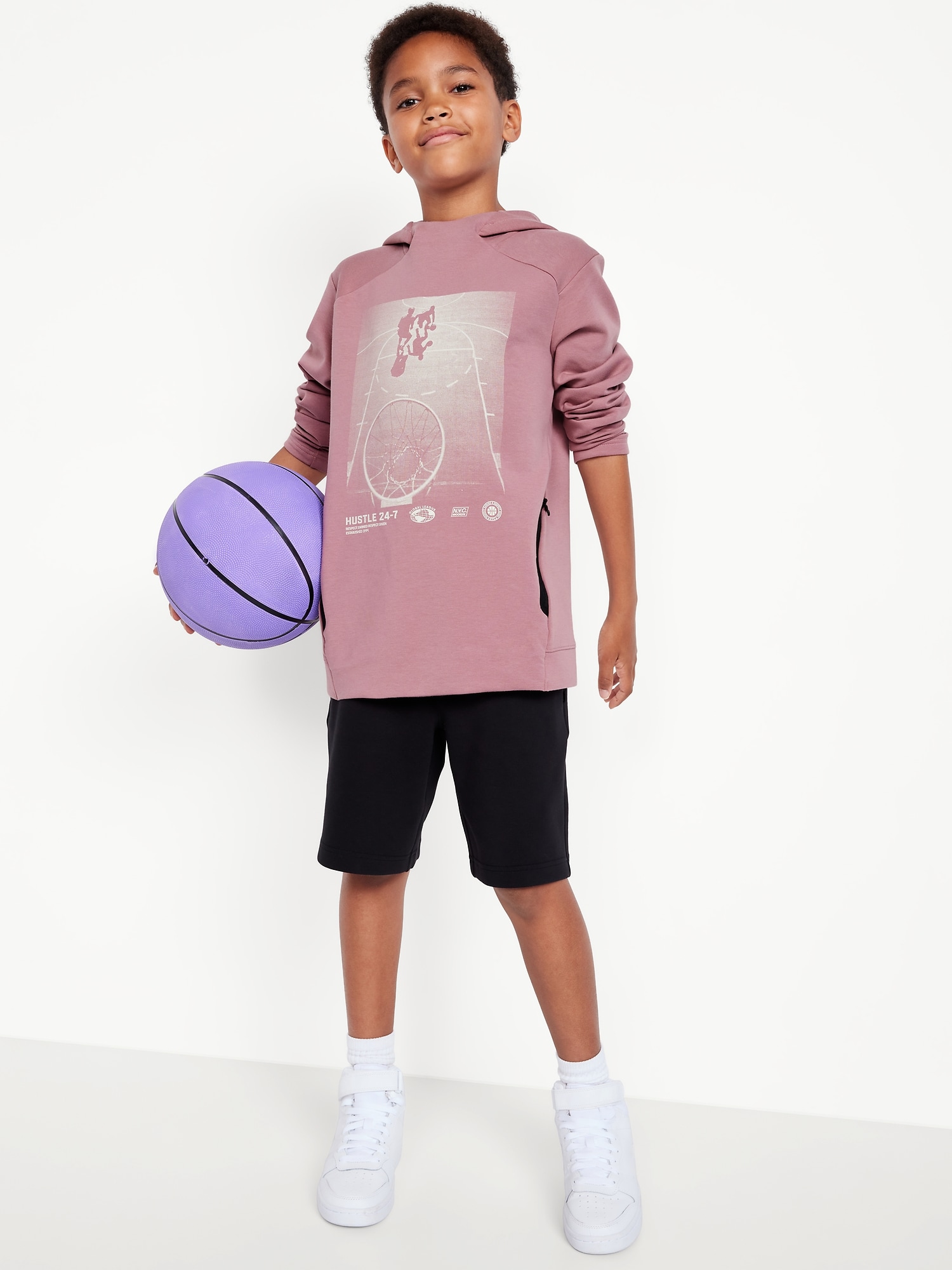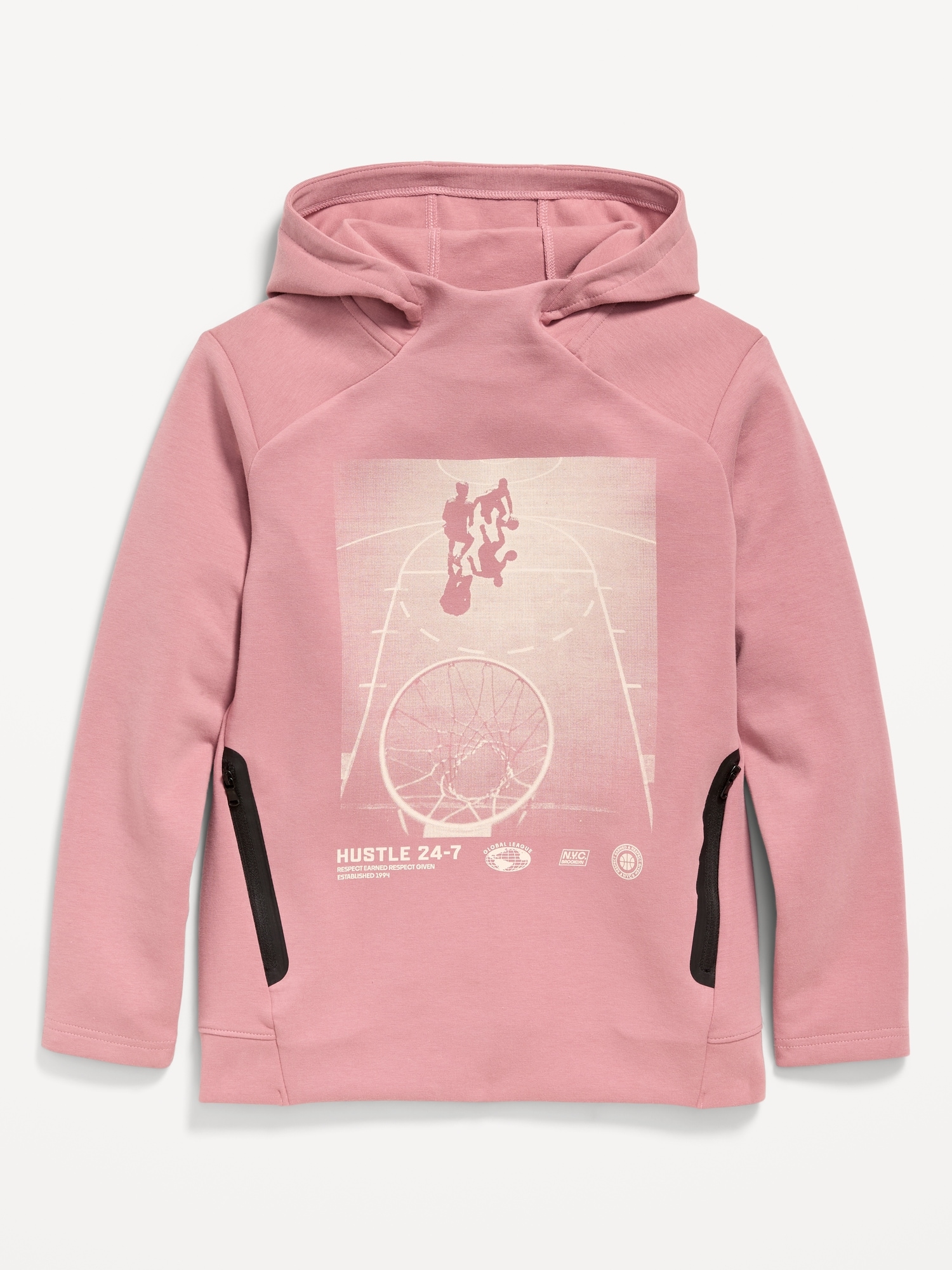 Dynamic Fleece Pullover Hoodie for Boys: Made to keep up with all their shenanigans.built-in hood, long sleeves, side zippered pockets, #505457